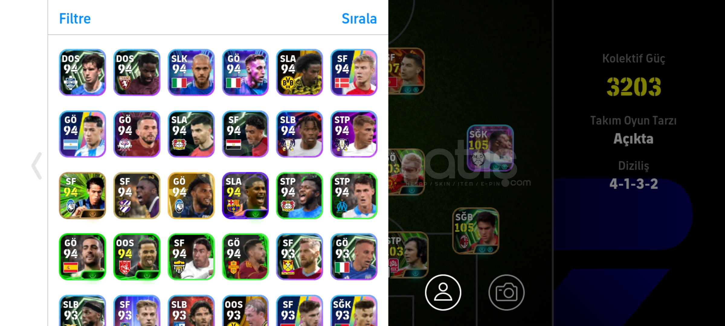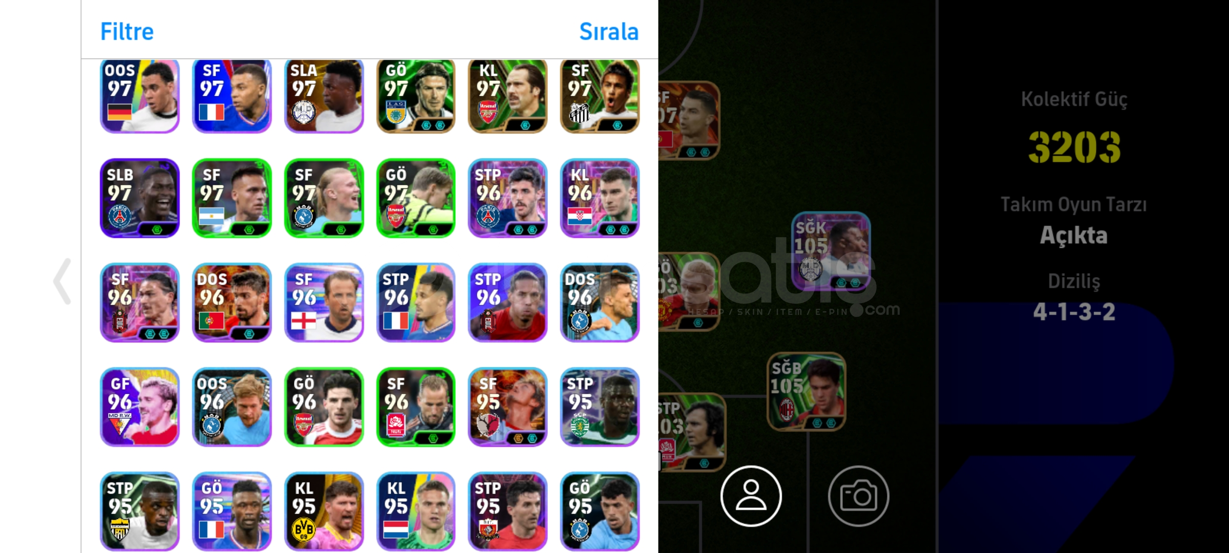 107 ronaldo 106 mbappe 104 insigne 105 costacurta 106 oliverkahn 105 rubendias ve dahasıUfaktan pazarlık edilir.Alana hayırlı olsun.