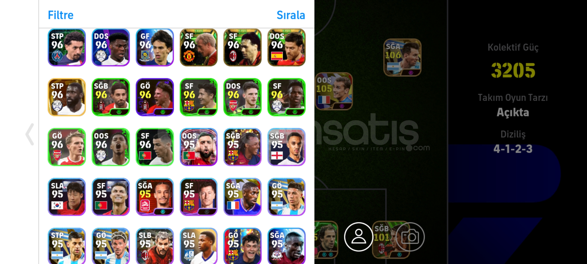 PAZARLIK VARDIR öngörülü pas ve momentum driblinge sahip vini JrMessi'nin Altın Özel kartıAntonio Griezman'nın özel kartıNeymar'ın 104-105 lik Barcelona kartı104 Lautaro Martinez103 Osimhen kartıVe defansı sağlam bir kadro tam bir şekilde hazırlanmıştır