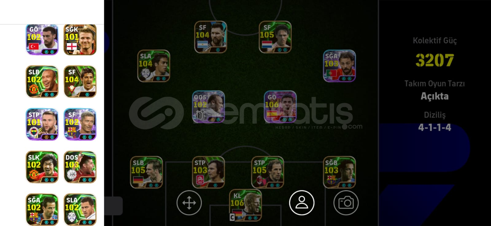 3207kg 104 messı 106 rodrı 106 olıverkahn 102 neymar 105 franco baresı 104 raul 105 phılıplahm dehset hesap