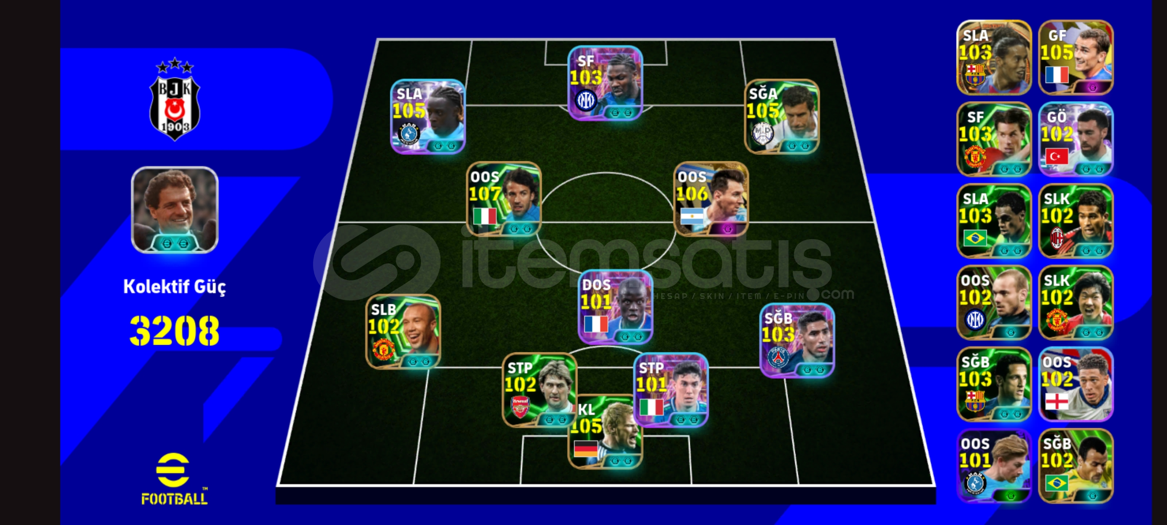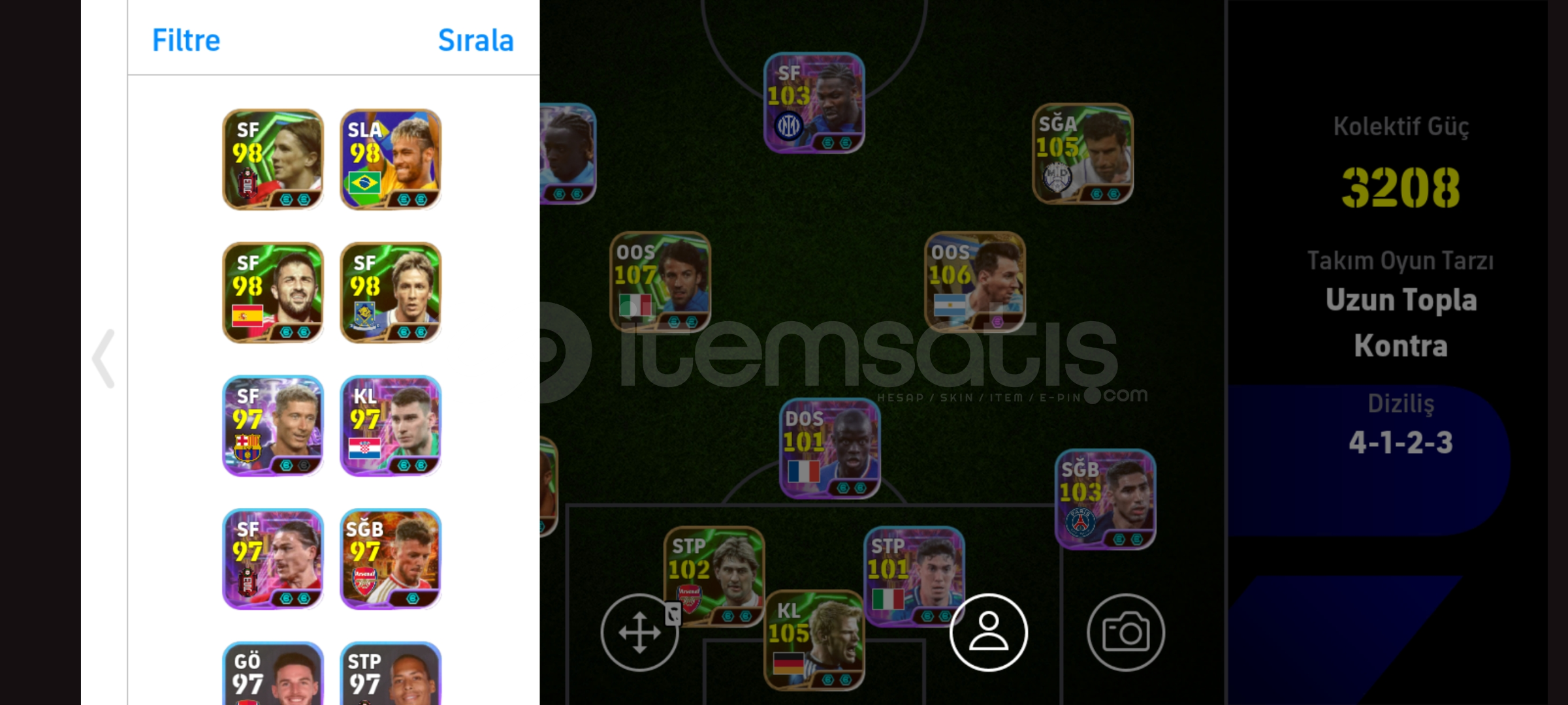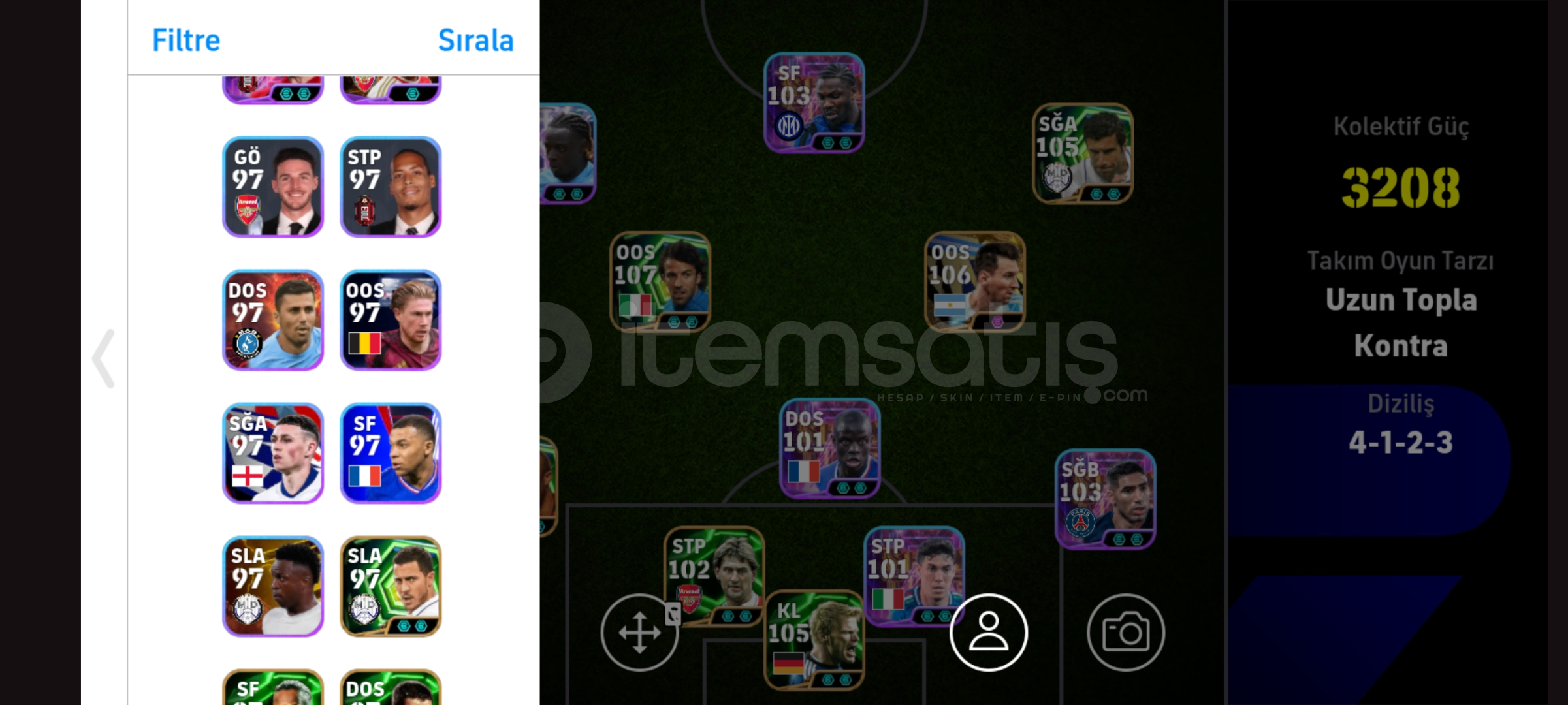 Hesap Tek Bağdır.103 Mermi Kafa Thuram107 Bombacı Del Piero105 Jeremy Doku105 Luis Figo ve nicesi105 Olvier Kahn5+ Paralı MenajerBol RezervSüperlig TakımıEpic Kart TakımıPremier Lig