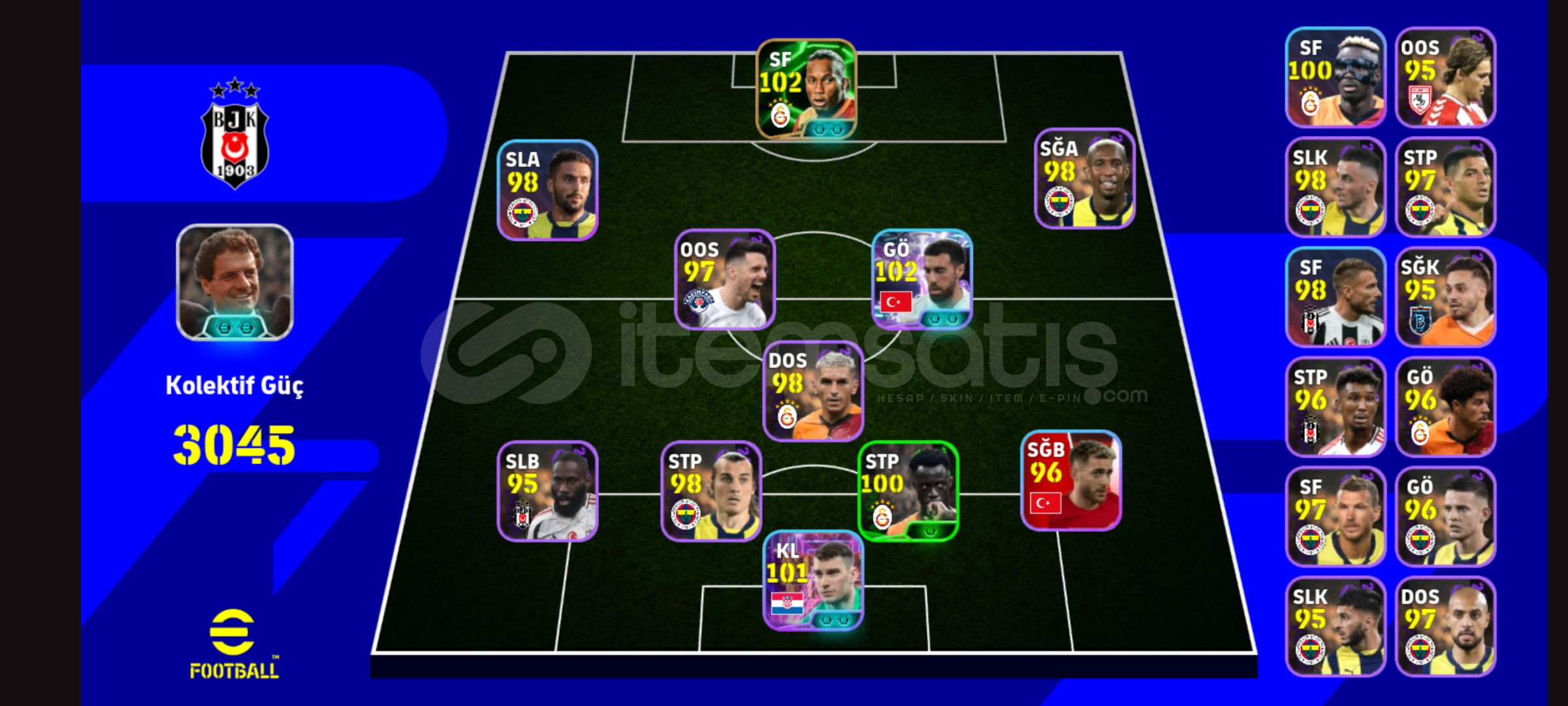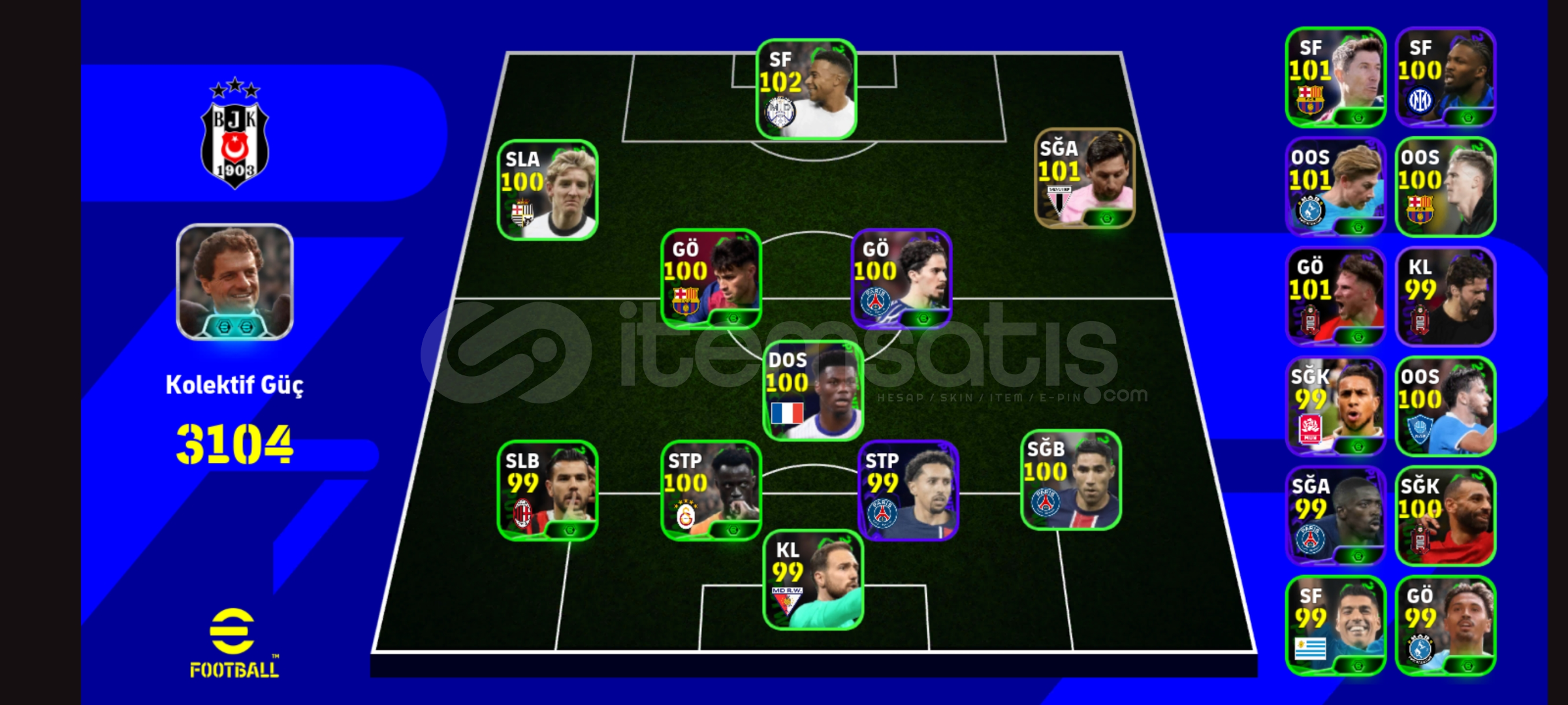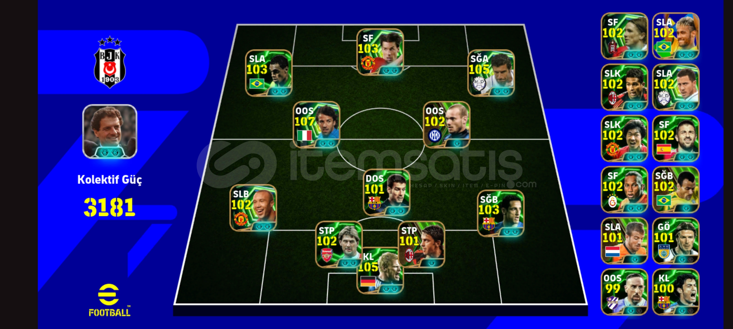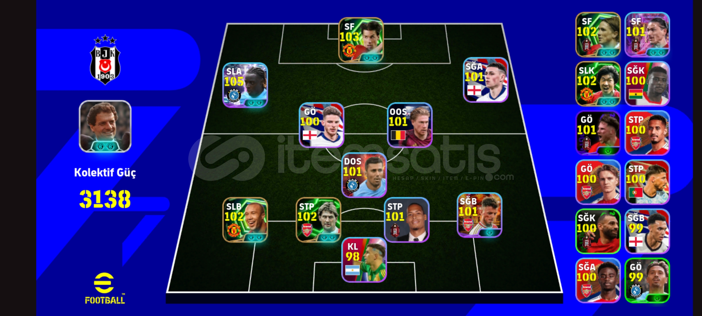 Hesap Tek Bağdır.103 Mermi Kafa Thuram107 Bombacı Del Piero105 Jeremy Doku105 Luis Figo ve nicesi105 Olvier Kahn5+ Paralı MenajerBol RezervSüperlig TakımıEpic Kart TakımıPremier Lig