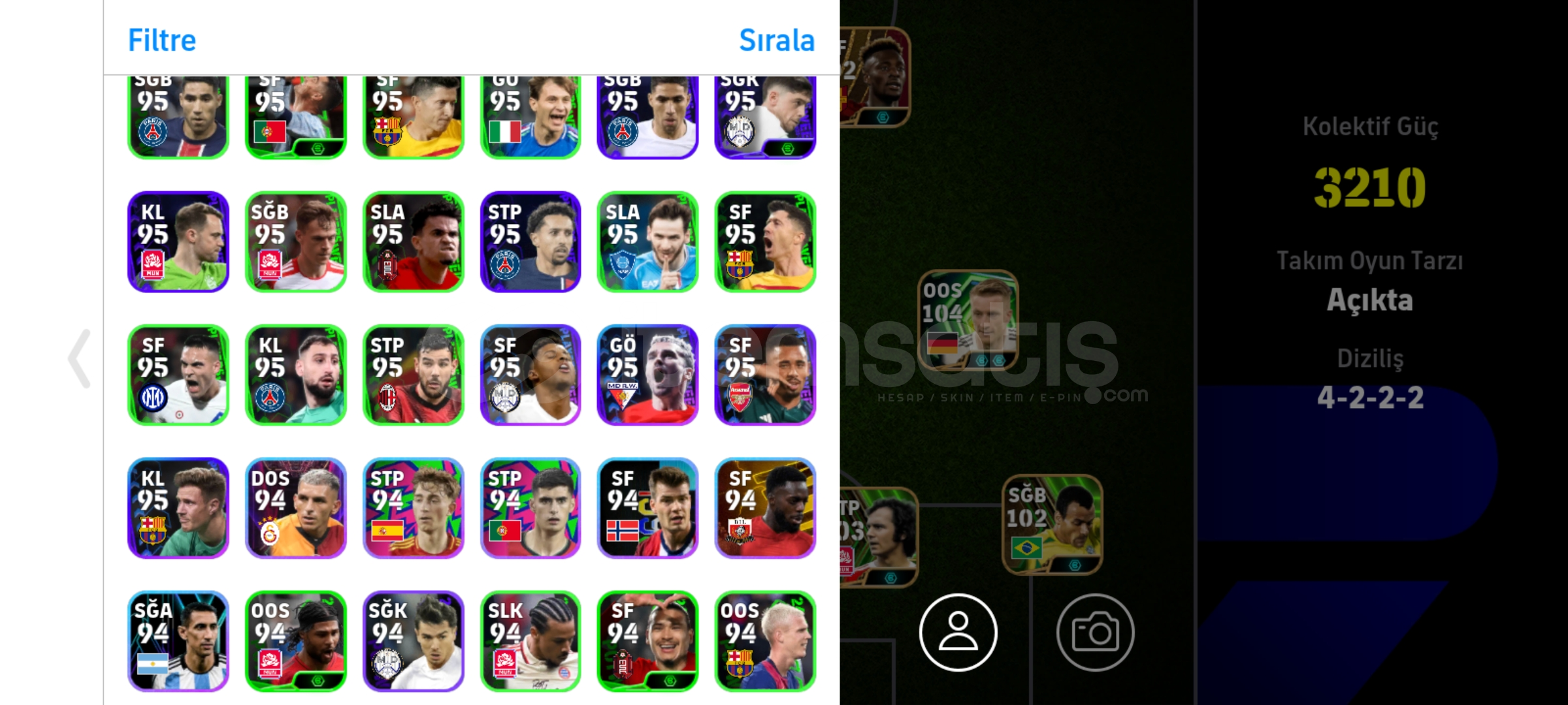 Tek bağ-mc yok 102 Abraham107 Ronaldo105 Gullit103 De Jong104 Marco Reus102 NestaGün içinde aktifim ilgilenenler dm den yazabilir