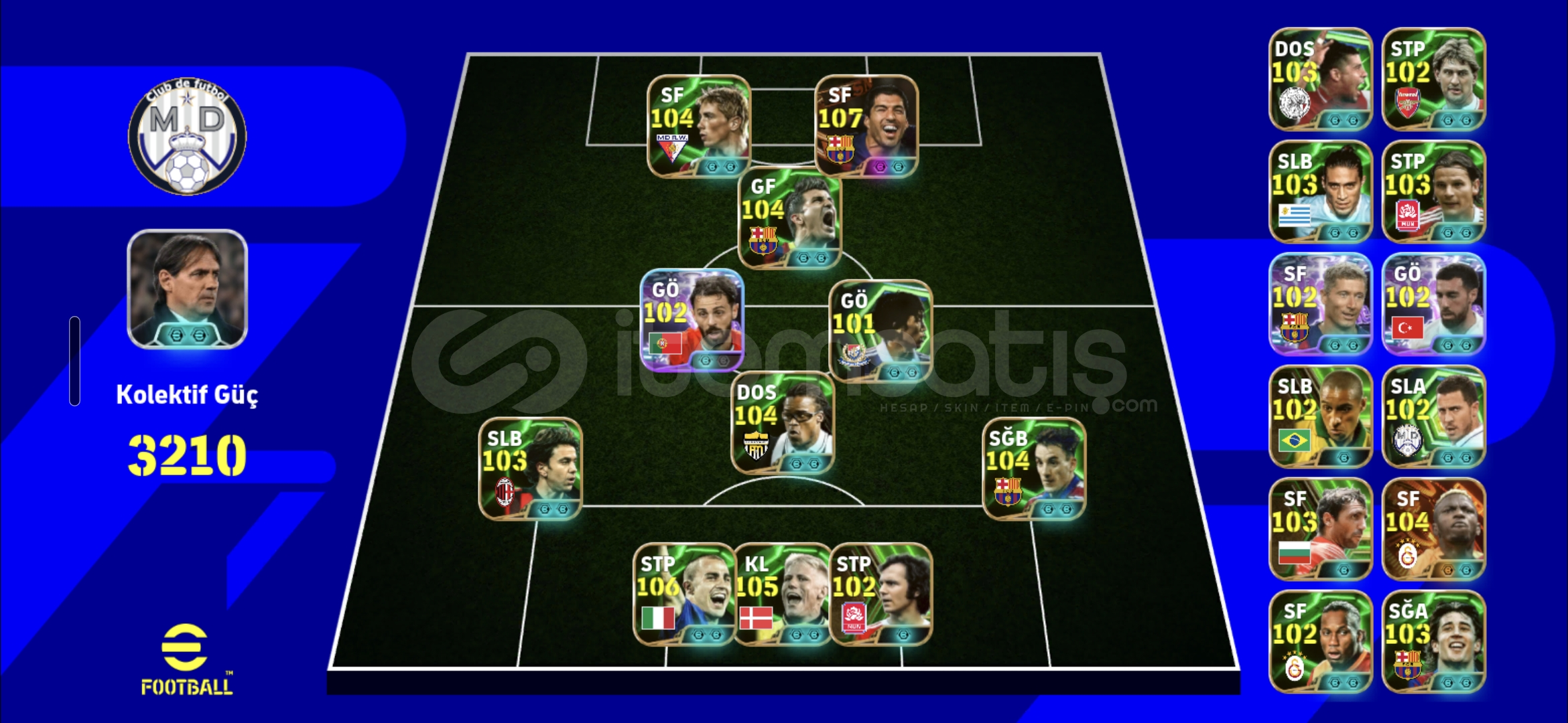 107 SUAREZ 104 BOMBACI DAVİD VİLLA104 FERNANDO TORRES 104 OSİMHEN103 BOJAN KIRKİC 104 EDGAR DAVİDS103 COSTACURTA 104 ALBERT FERRER106 CANNAVARO 105 SCHMEİCHEL101 BOMBACI NAKAMURAalıcısına hayırlı olsun
