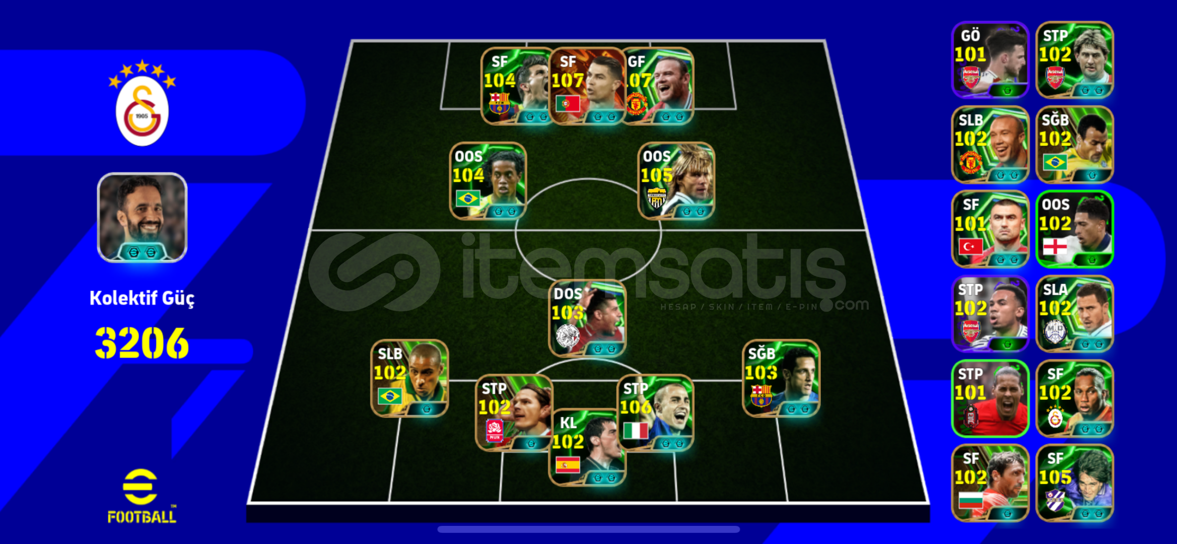 Arkadaşlar yine sitenin en iyi hesaplarından biri geldi gerçekten böyle hesap bulunmaz harika bir orta saha abartı harika bir forvet hattı bar yani çok nadir bulunmakta böyle hesap hesapta - mc yok tek bağ üstünüze yaparız bize yazın yeter🏹107 RONALDO 🏹107 roney 🏹106 nedved 🏹105 ronaldinho 🏹104 villa ( bombacı )🏹101 Burak Yılmaz ( bombacı ) 🏹106 canrava...