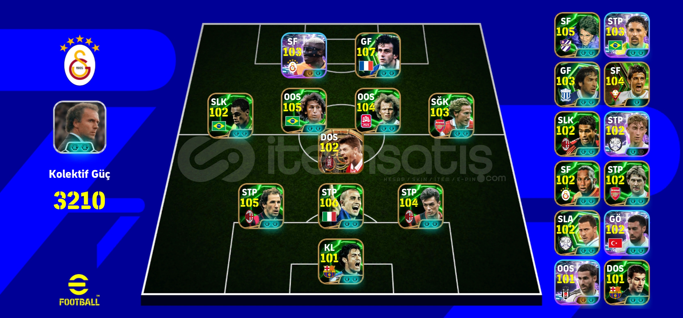🔥3210 Kollektif Güç. 107 Victor Osimhen. 107 Michel Platini. 106 Fabio Cannavaro. 105 Franco Baresi. 105 Paulo Maldini. 104 Sebastian Hoeneb. 102 Big Time Steven Gerrard. 102 Denilson. 105 Flippo İnzaghi.