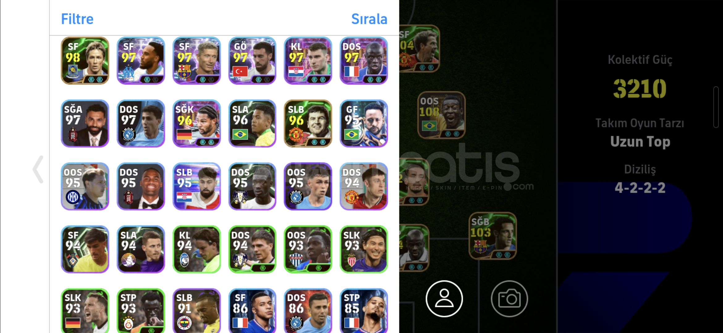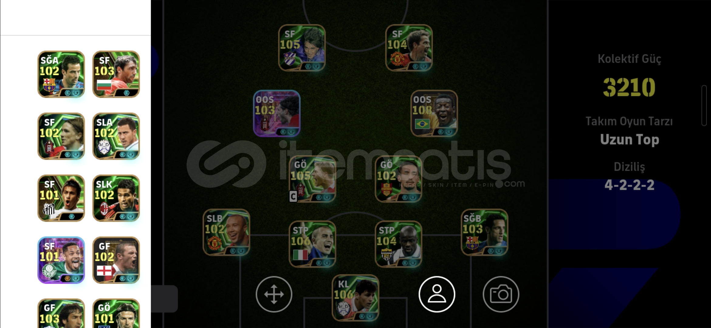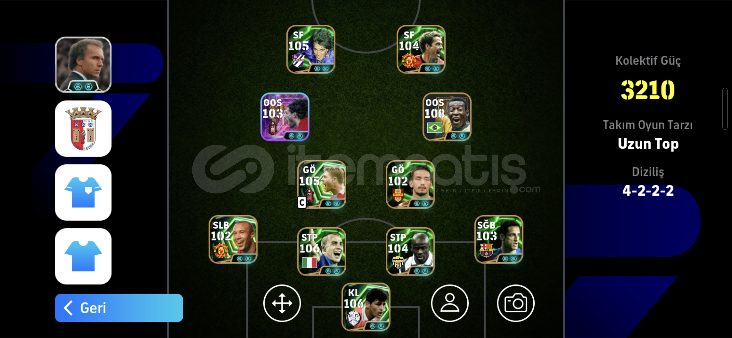 3210 KG108 Pele103 Bombacı Szobozlai105 Gerrard Yer Füzesi106 Casillas104 ThuramTek Bağ Rezervli