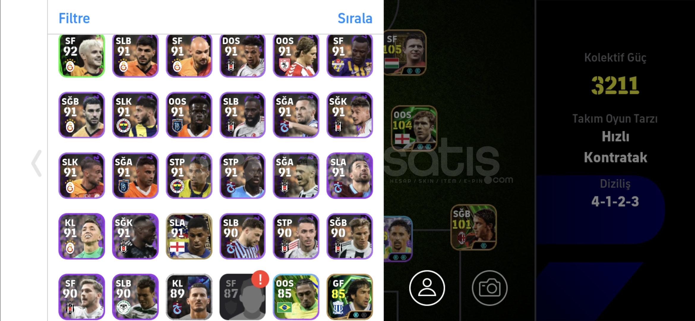 3211 KG+ 2 BOMBACILI, AŞIRI FAZLA VE NADİR KART DOLU REZERV.KG 3211 AMA TD ALIRSANIZ ÇOK RAHAT 3220 LERİ GÖRÜR IOS/ANDROID TEK BAĞ EKSİ MC SİZ. HESAPTA;106 PUSKAS106 MBAPPE106 OLIVER KAHN106 CANNAVARO105 RUMMENIGGE105 ALESSANDRO DELPIERRO(bombacı)105 MATTHAUS104 SCHOLES104 MESSİ101 BURAK YILMAZ(bombacı)VARDIR ALANI ÜZMEZ EFSANE HESAP FİYAT SONDUR İNDİRİM İSTEMEYİNİZ...