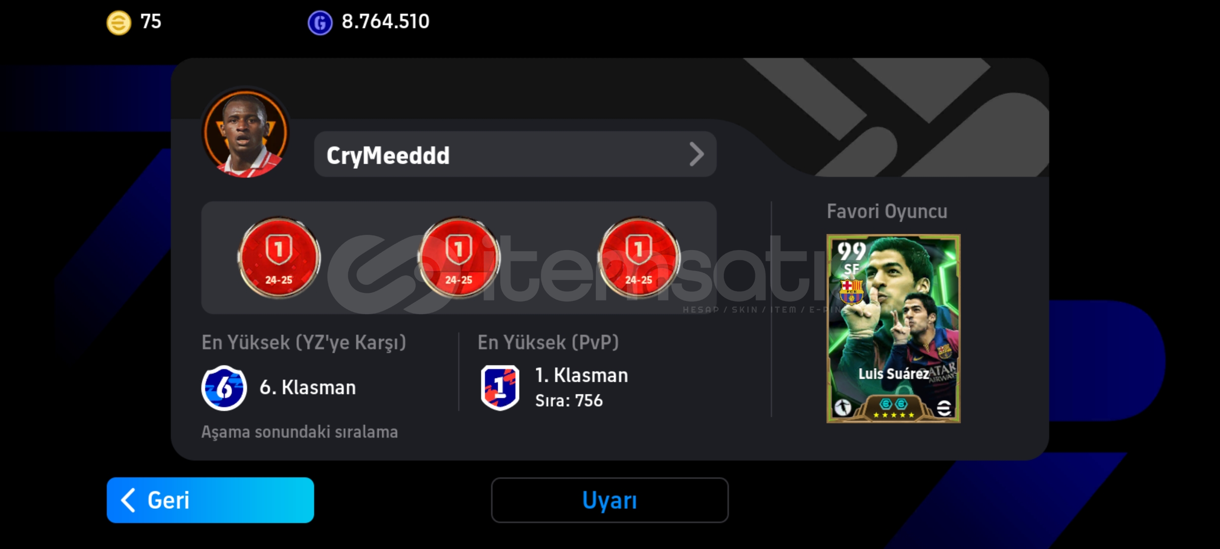----------------------------------------Öncelikle ilanımı gören herkese merhabalar, iyi günler dilerim;✨İlanın resimlerde tüm detayları verilmiştir. Tek bağ İos/Android, -mc yoktur. Ek olarak merak ettiğiniz soruları sorabilirsiniz. Hesaplar Konami ID bağı ile sizin üzerinize geçirilecektir. (Hesabı üstüne almayı bilmeyenlere yardımcı olurum.)Müşteri de&...