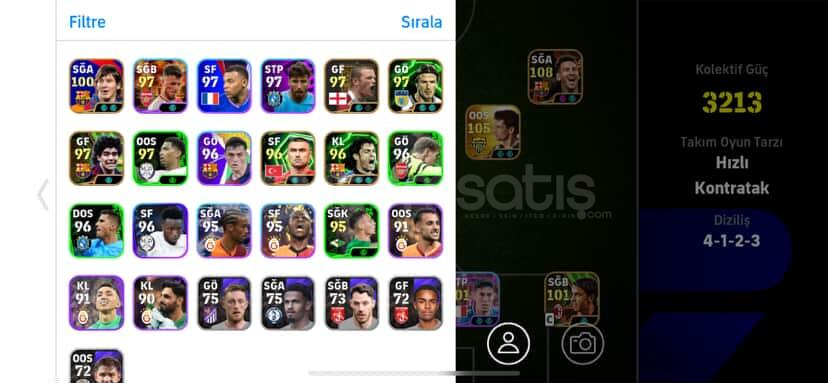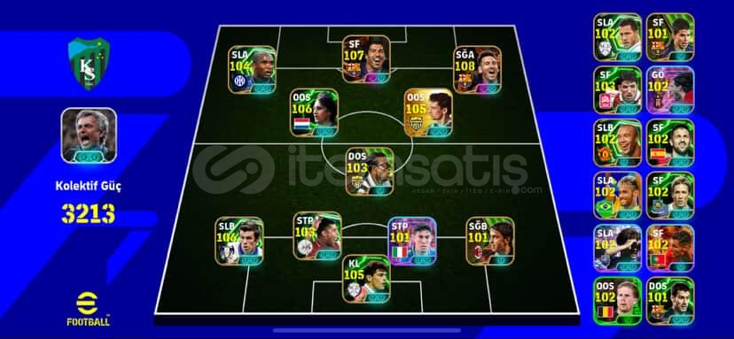 HESAP ÖNCELİKLE TEK BAĞDIR HESABIN İLERİ HATTI AŞIRI İYİDİR102 RONALDO 108 MESSİ (BOMBACI)107 SUAREZ102 NEYMAR102 MUENTA106 CRUYF106 BALE105 ETO103 EDGAR DAVİDS 105 BAGİO105 CASİLLAS 101 COSTACURTA 103 MAKAY103 SZBOSLAİ (BOMBACI)
