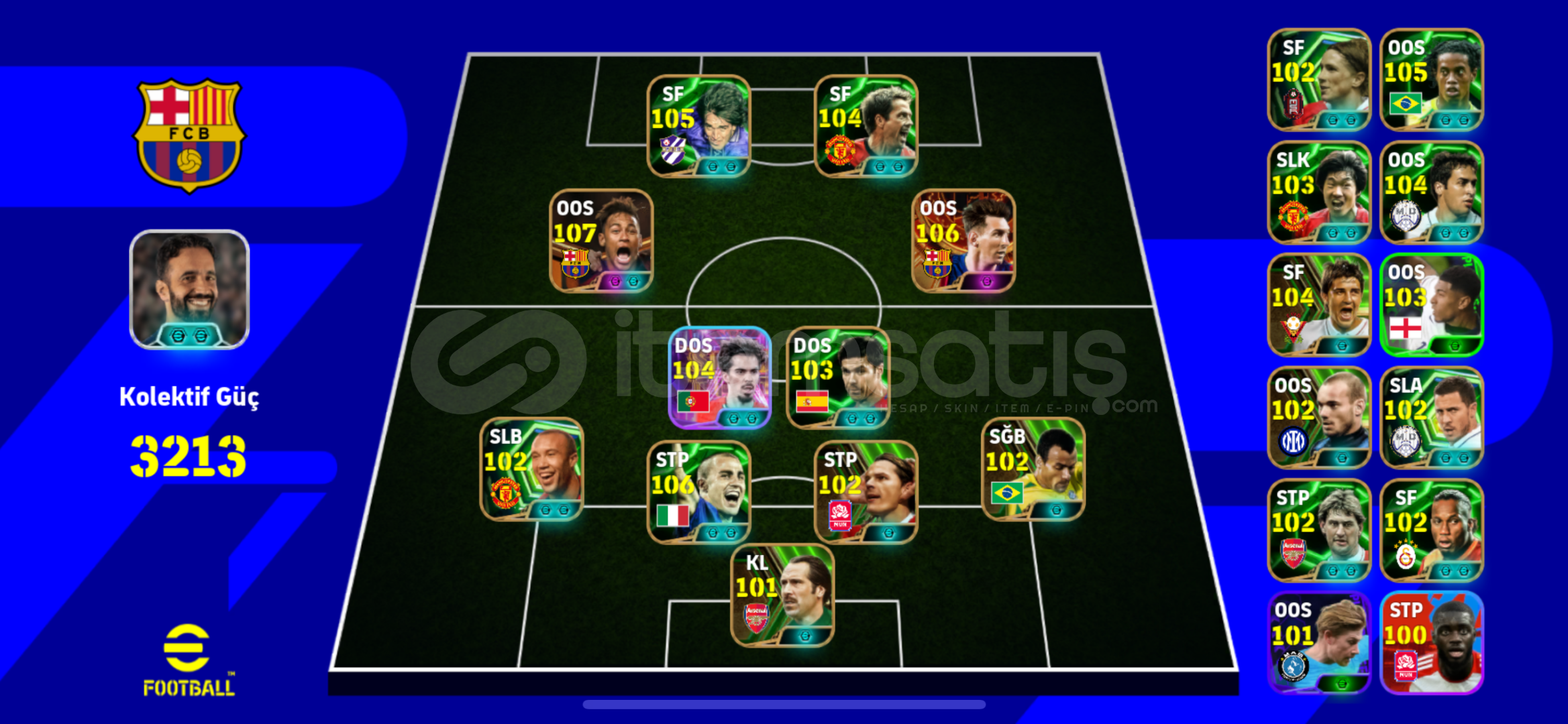 Hesabım tek bağdır. 107 Neymar 106 Messi 105 Ronaldinho gibi güzel kartlar bulunmakta. Fiyat Sabittir. Hesabın bağlı olduğu gmaili direkt size vereceğim. Ciddi alacak arkadaşlar iletişime geçebilir.