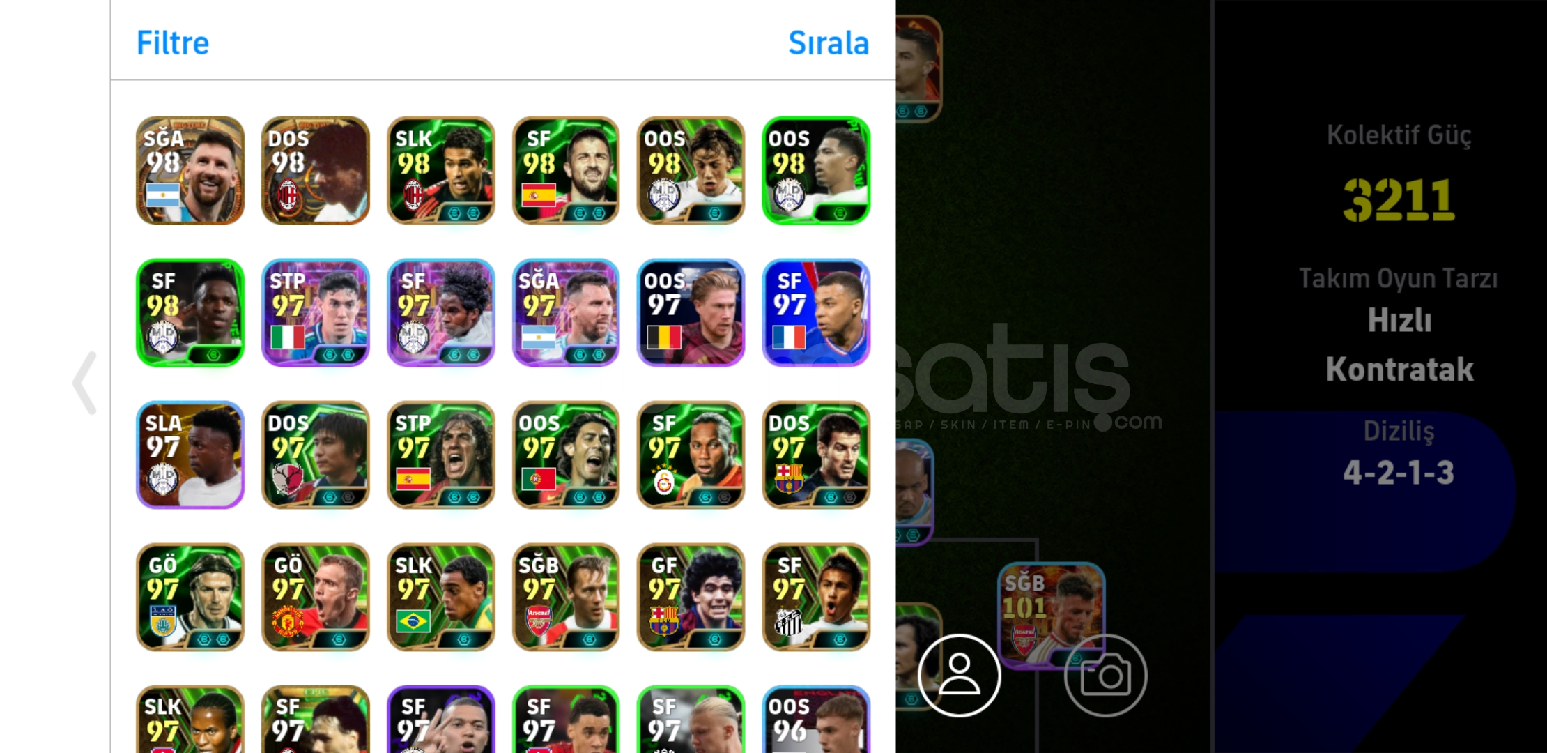 Hesapta 107 ronaldo big time 106 eto 105 drogba 106 messi 105 forlan 103 delpiero ve daha bircok ozel oyuncu Rezerv Agzina kadar doludur .yeni gelen e...