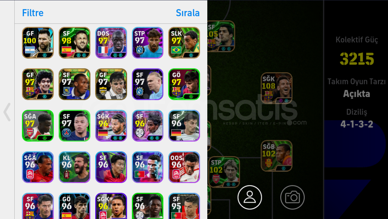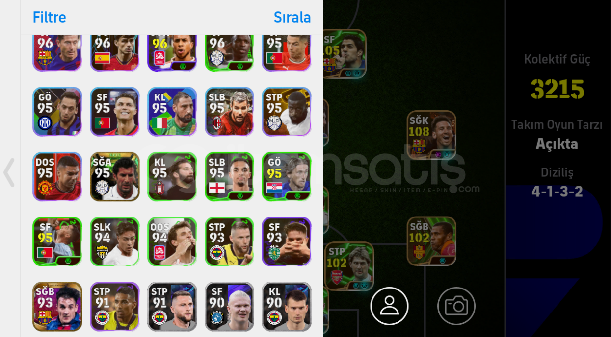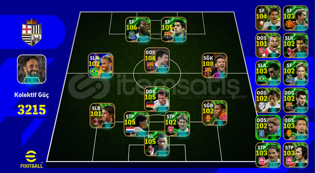 Tek bağ -mc yok108 Bombacı messiBol MC'li oyuncu bulunmaktadırOrta kafa gol oynayanlar için kadro dışı 99 Figo da bulunmaktadırGün içinde aktifim ilgilenenler DM'den yazabilir