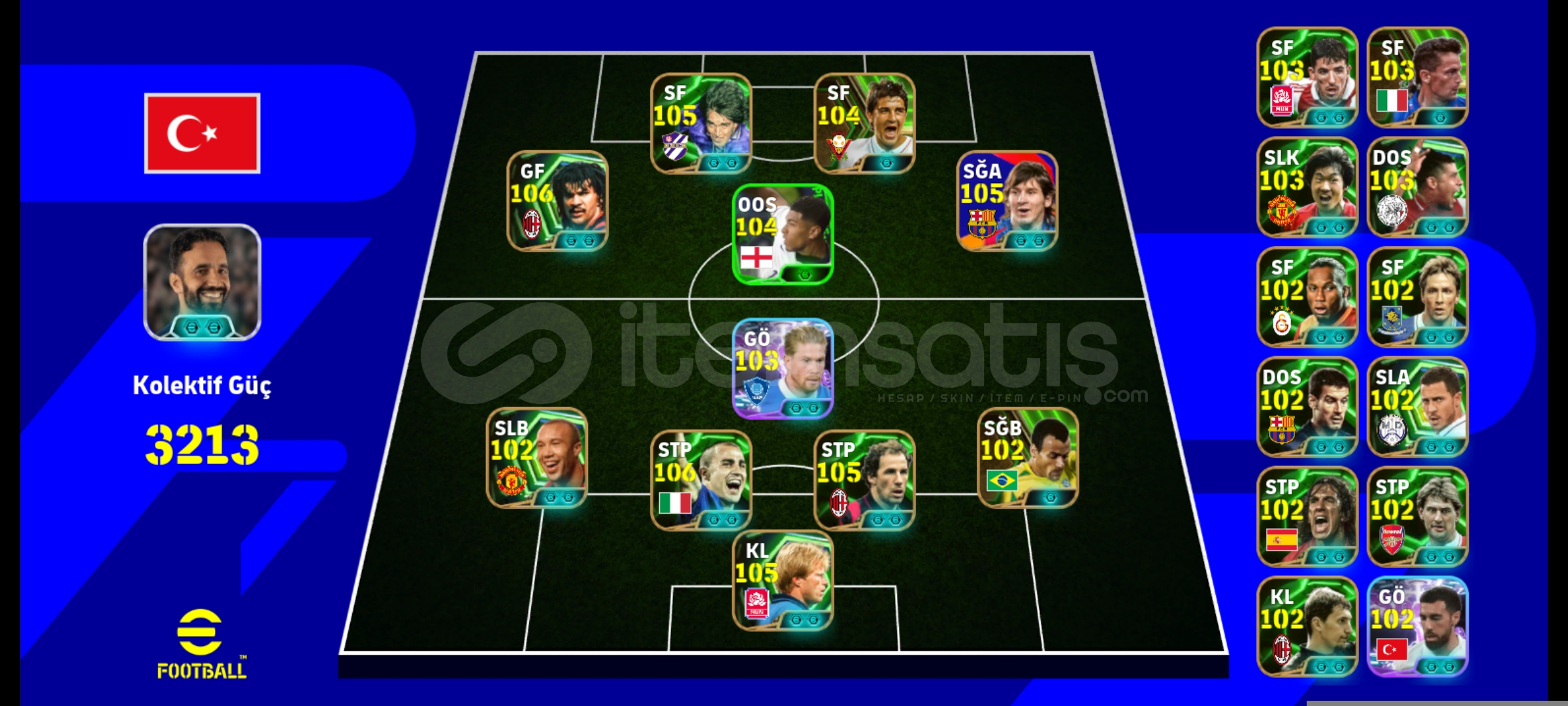 3215KG HESABIMIZ 106LAR 105LER DOLU OLUP MAİNLİKTİR REZERV İYİDİR. 106GULLİT 106CANNAVARO 105KAHN 105BARESİ 105MESSİ 105BATİSTUTAÇİFT GÜÇLENDİRİCİ AMORİMTEK BAĞDIR EPOSTANIZA DEVREDİLİRALICISINA HAYIRLI OLSUNPAZARLİK OLUR PAZARLİK SÜNNETTİR