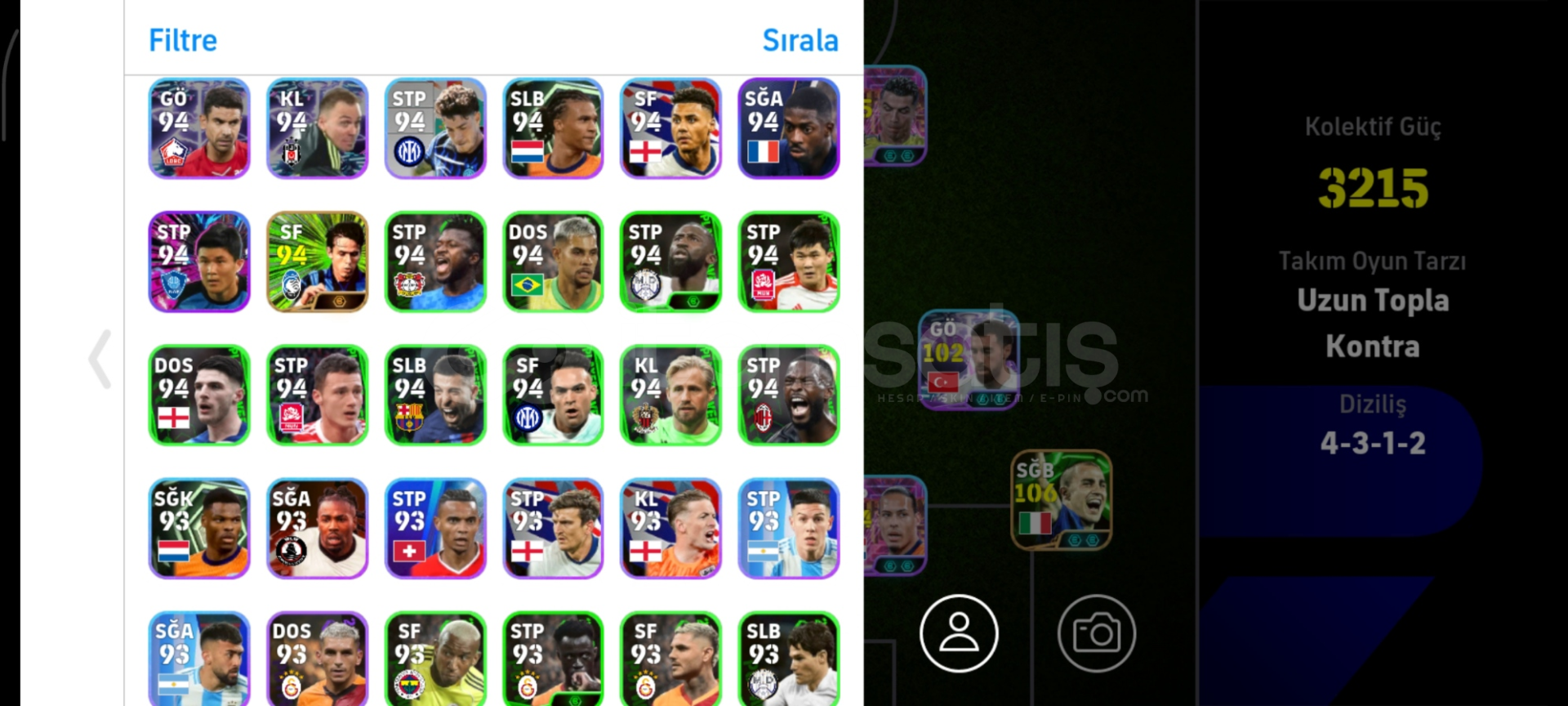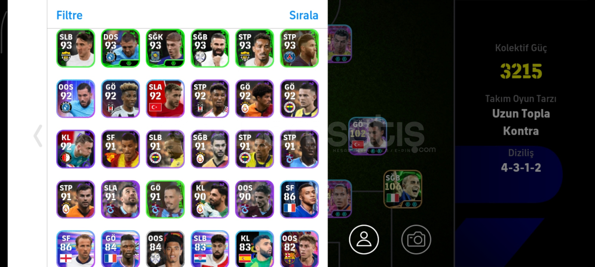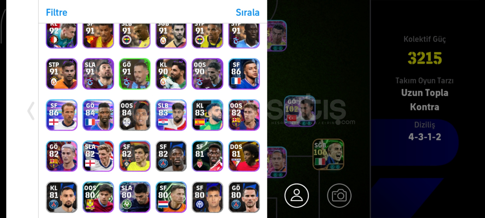 HESAP HAKKINDA:Efsane savunma hatlı ve Bol bol rezerveli tek bağ efsane hesap!Güçlendiriciler ayarlandıktan sonra 3220+ kg olur! Savunmada oyunun en iyi stoperleri mevcut! Hava bariyeri özellikli 105 chellini ve 104 van dijk! Uzun top becerili yeni oyunun meta menejeri Capello mevcut!Bol bol Epic, Showtimes, özel menajarler ve dolu rezerve mevcut!Güzel fiyata efsane hesap çok durmaz kaçırma! ──────&...