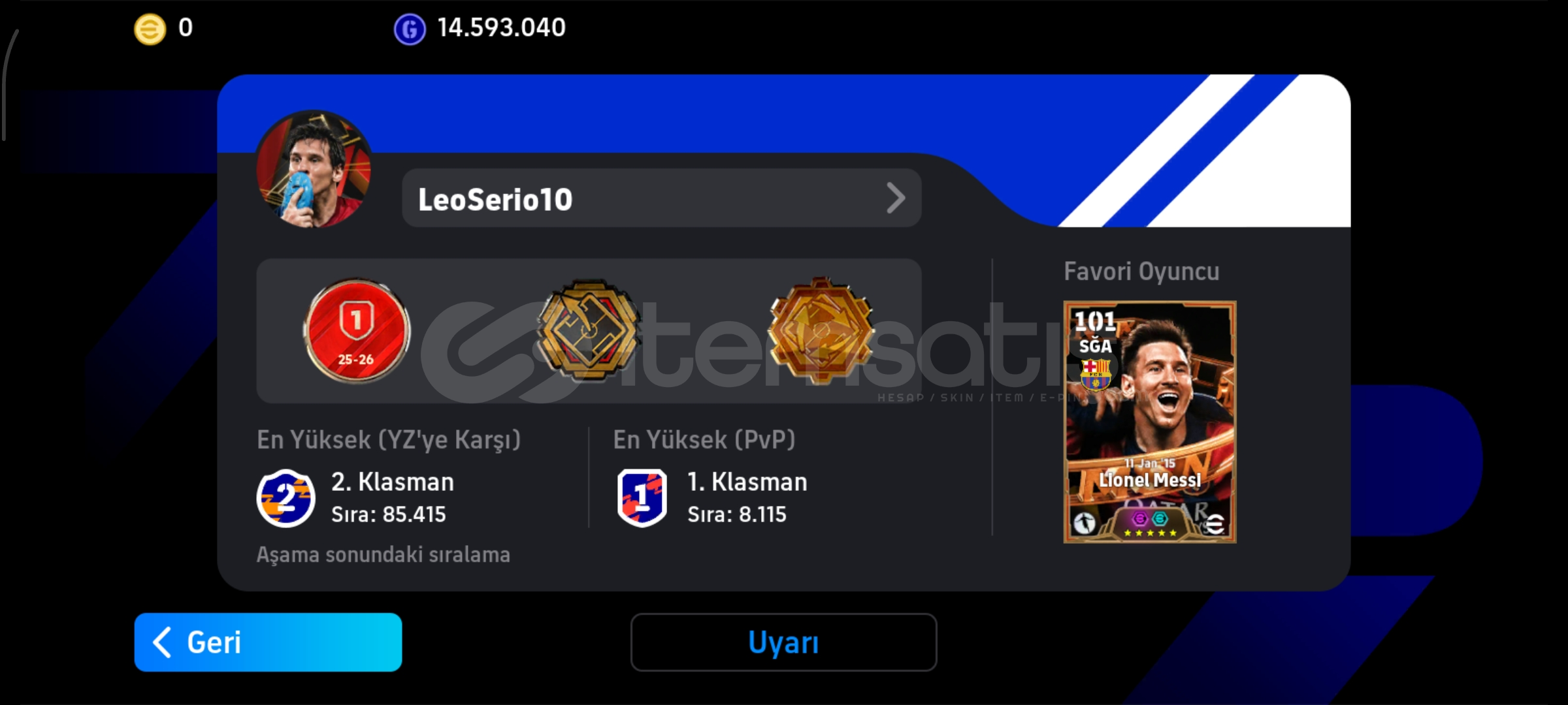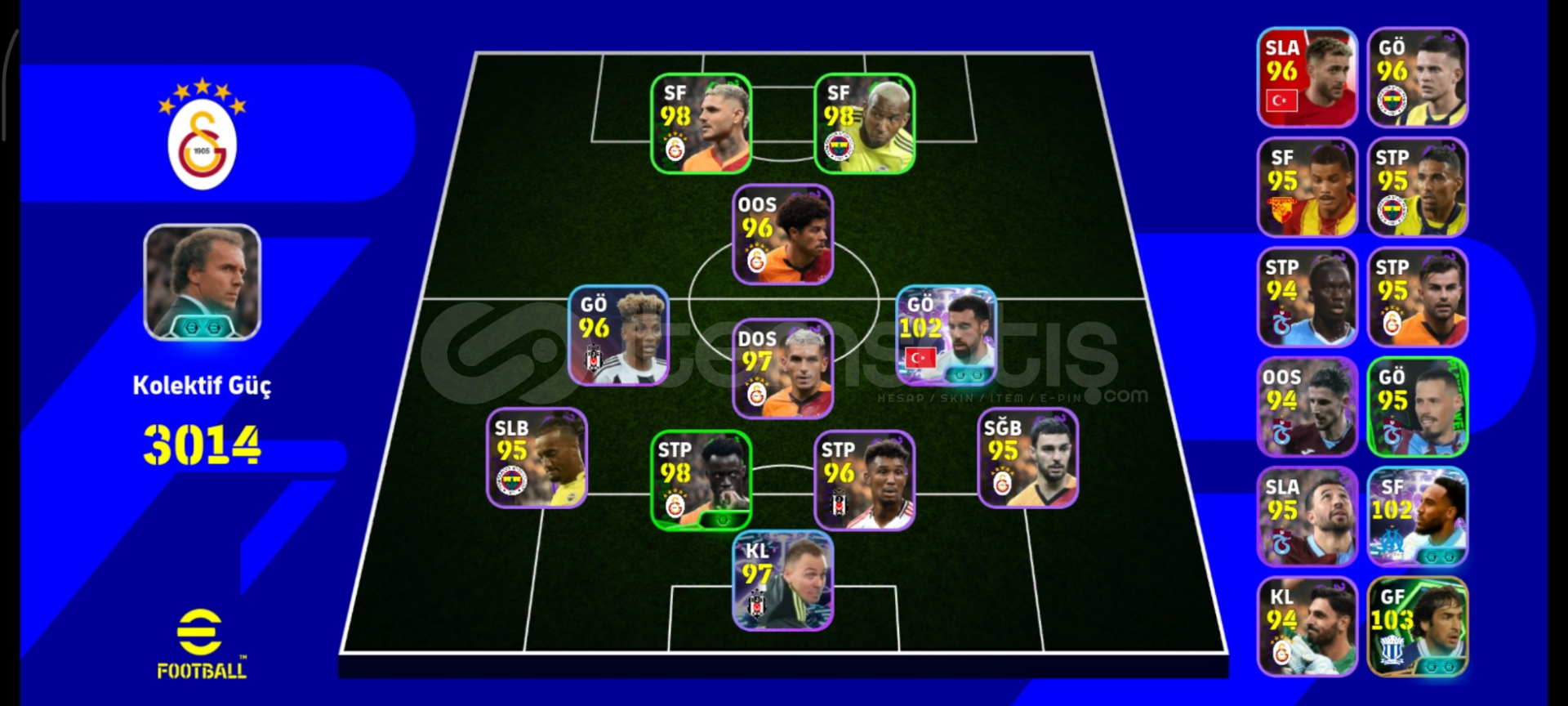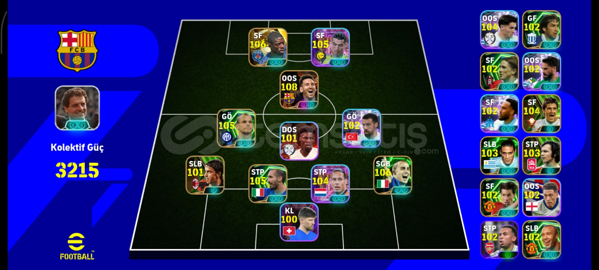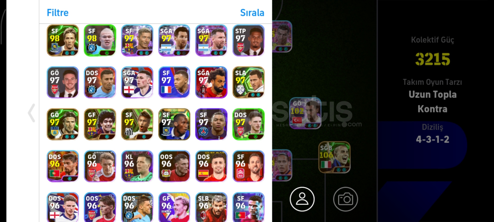 HESAP HAKKINDA:Efsane savunma hatlı ve Bol bol rezerveli tek bağ efsane hesap!Güçlendiriciler ayarlandıktan sonra 3220+ kg olur! Savunmada oyunun en iyi stoperleri mevcut! Hava bariyeri özellikli 105 chellini ve 104 van dijk! Uzun top becerili yeni oyunun meta menejeri Capello mevcut!Bol bol Epic, Showtimes, özel menajarler ve dolu rezerve mevcut!Güzel fiyata efsane hesap çok durmaz kaçırma! ──────&...