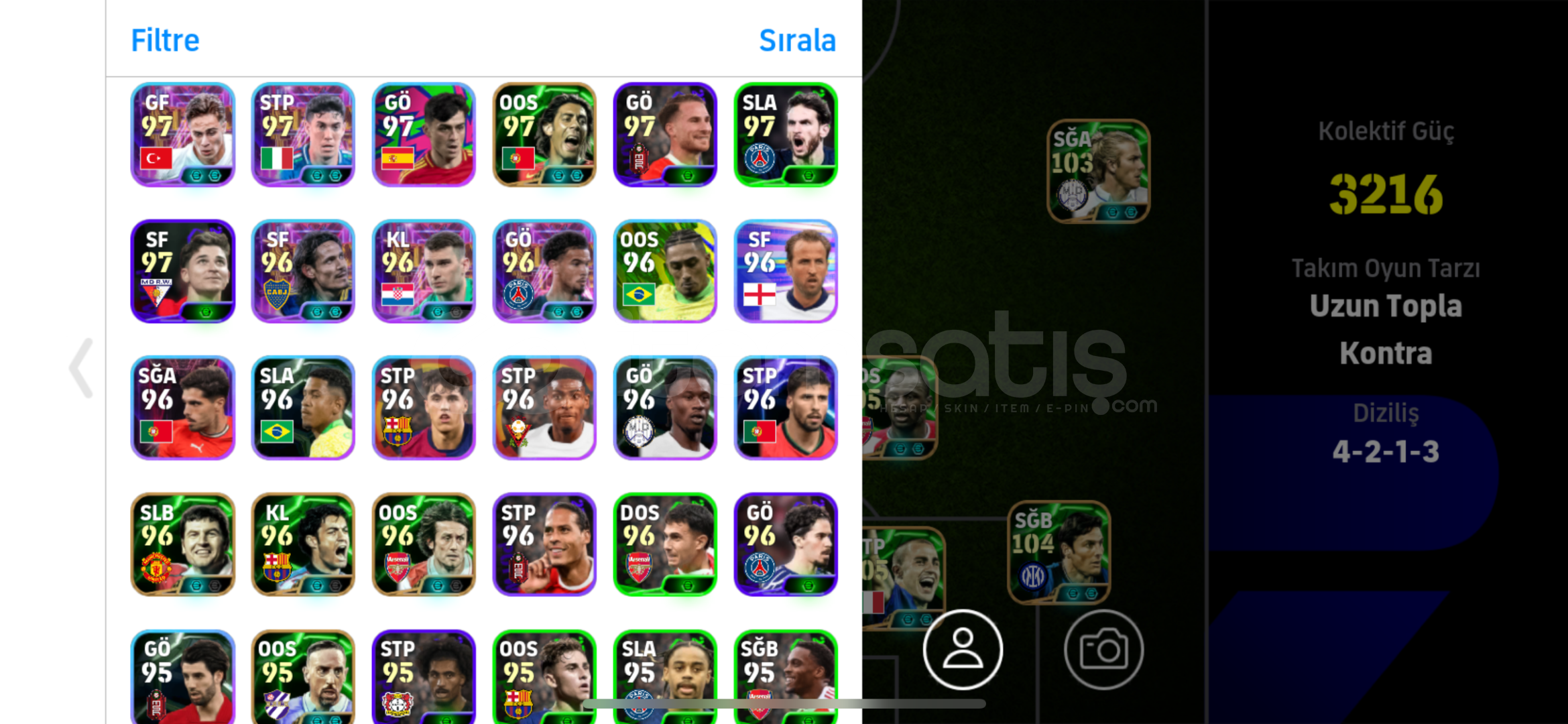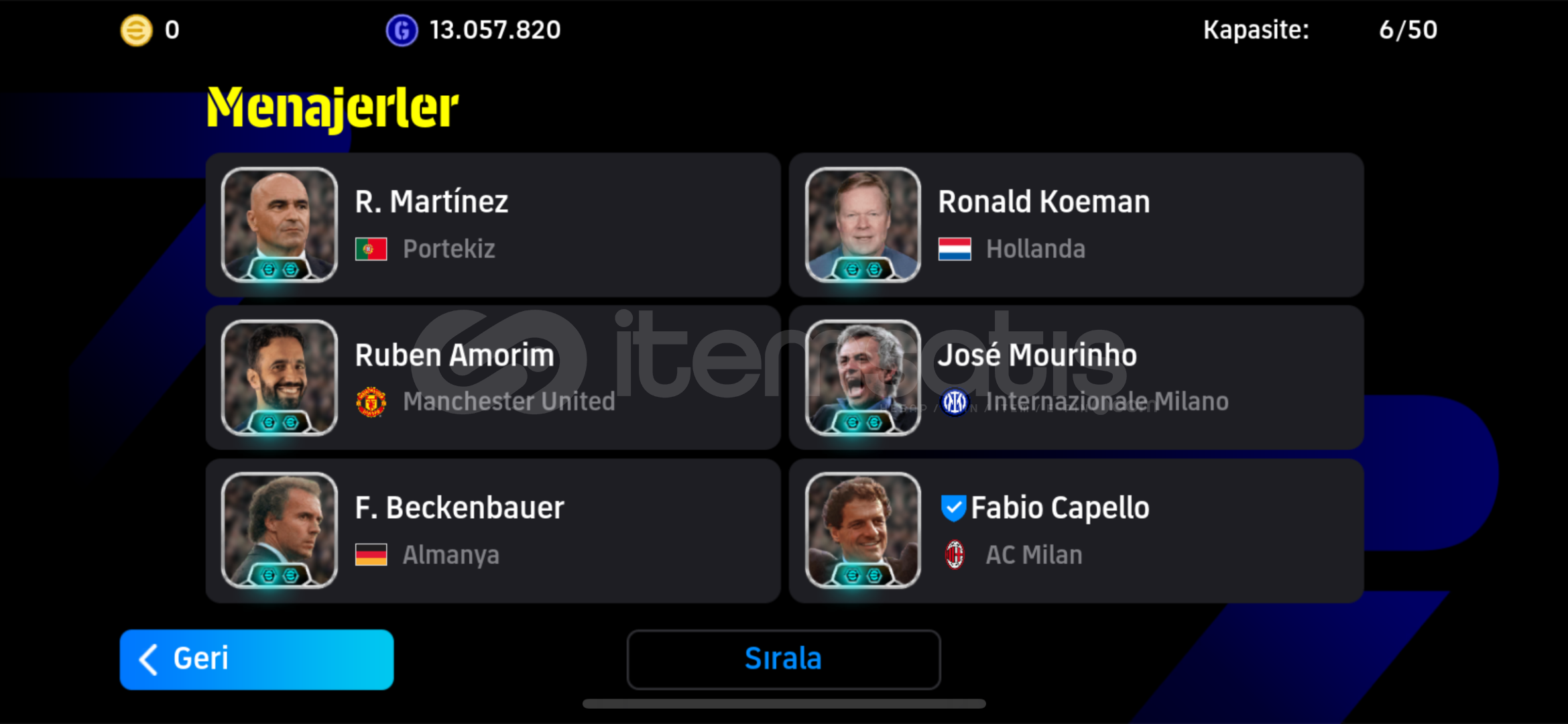 Hesapta birbirinden değerli oyuncular ve 6 adet çift güçlendiricili menajer var oyunu bırakacağım için m...