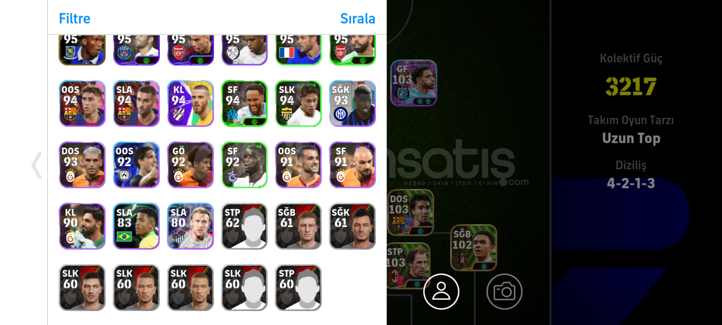 Merhabalar hesap tek bağdır Max 3217 kolektif güçtür hesapta değerli oyuncular vardır rezervi sağlamdır