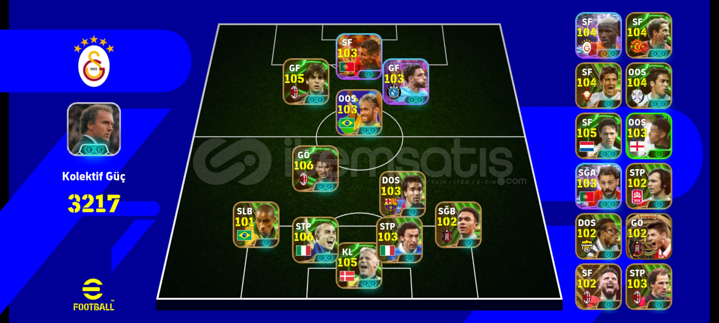 Merhabalar hesap tek bağdır Max 3217 kolektif güçtür hesapta değerli oyuncular vardır rezervi sağlamdır103 RONALDO105 KAKA106 GULLİT106 CANNAVARO104 OSİMHEN103 MARMOUSHVe birçok epik kart. Alıcısına hayırlı olsun