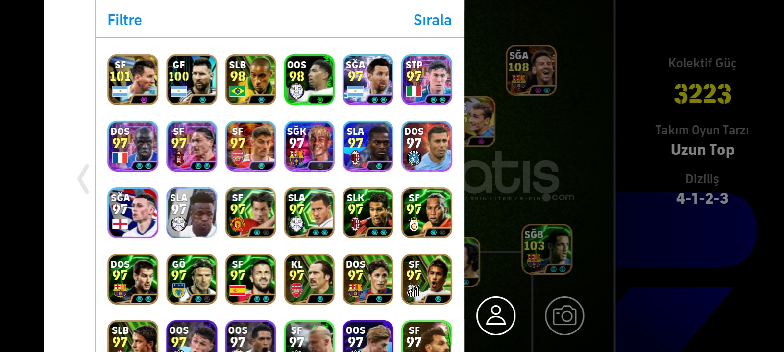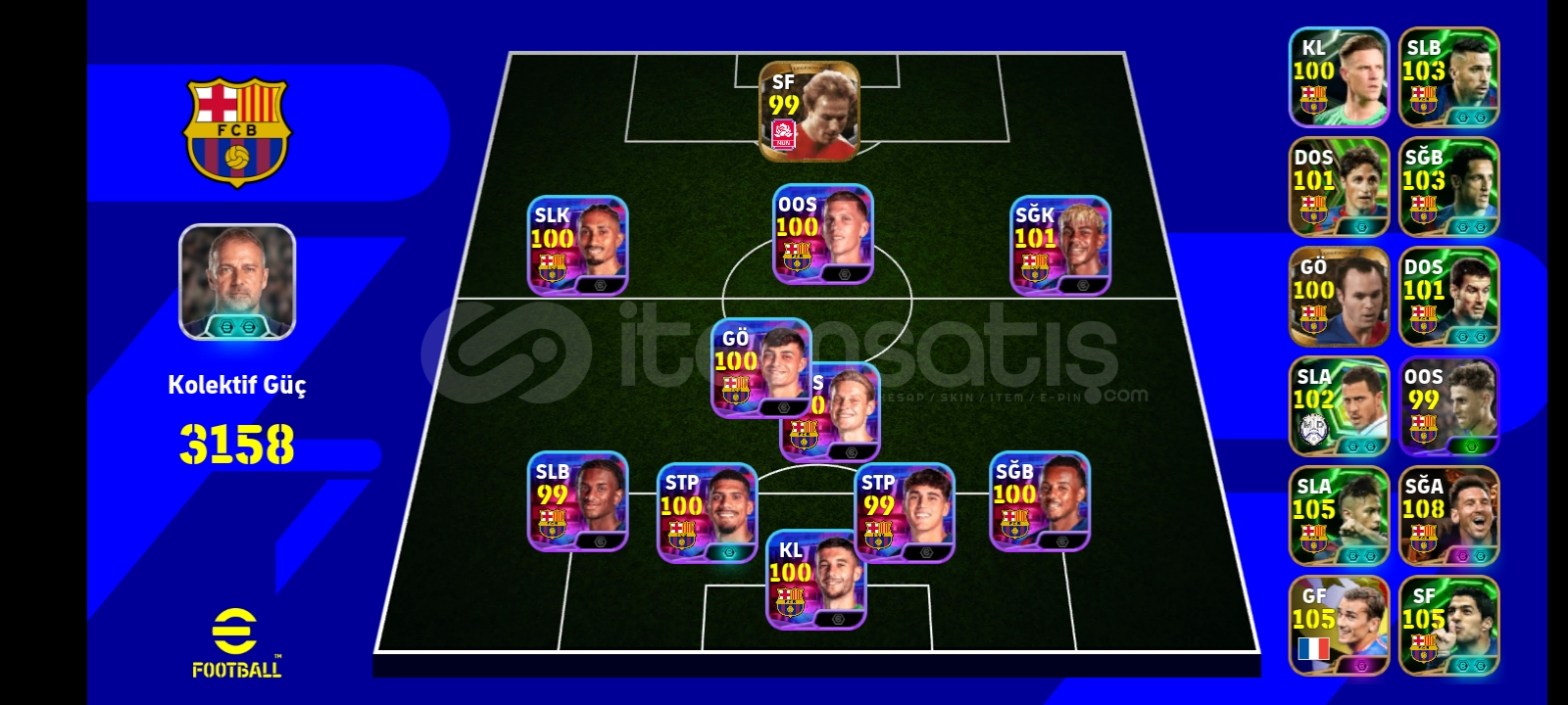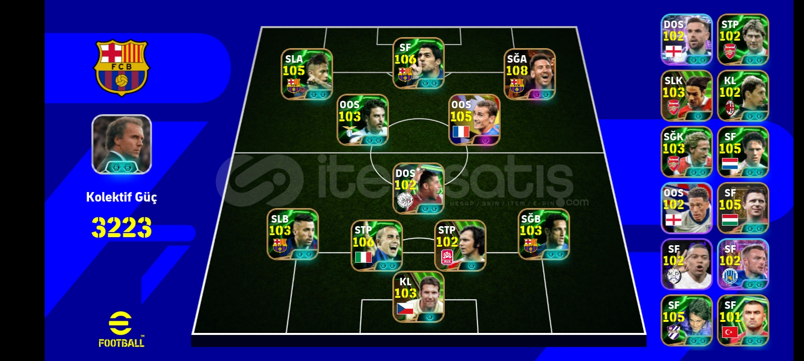 Hesap tek bağdırBarcelona paketi ve doku dolu menajerler vardır 104 Messi 106 Messi 108 Messi vardır Eski legend icon kartlar vard...