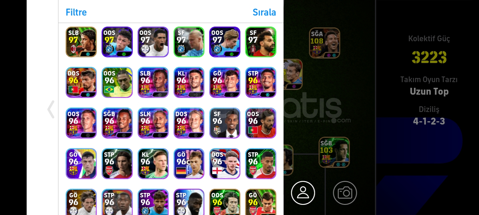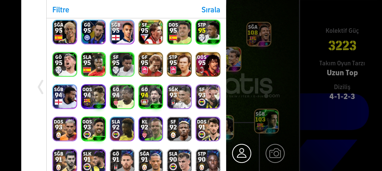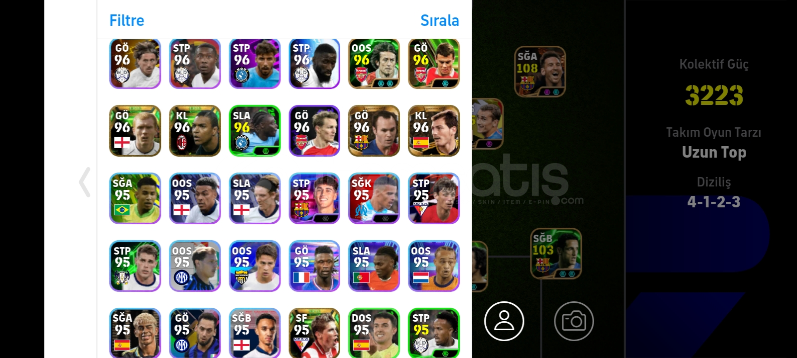 Hesap tek bağdırBarcelona paketi ve doku dolu menajerler vardır 104 Messi 106 Messi 108 Messi vardır Eski legend icon kartlar vard...