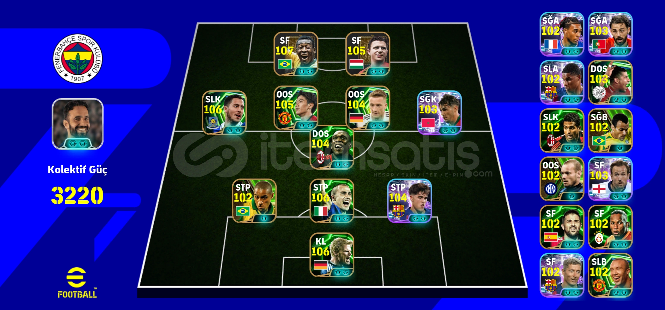 ✨ DijitaLiman Mağazası ✨Yüksek Memnuniyet Garantisi Verdiğimiz DijitaLiman Mağazamıza Hoşgeldiniz! Ürün hakkında detaylı bilgiler aşağıda yer almaktadır!Hesap Özellikleri :🔥 3220Kollektif Güç. 108 Pele. 106 Puskas. 106 Eden Hazard. 106 Fabio Cannavaro. 106 Oliver Kahn. 105 Shinji Kagawa. 104. Marco Reus. 104 Clarence Seedorf. 104 Brahim Diaz. 104 Pau Cubarsi. 103 Harry Kane.🔗...