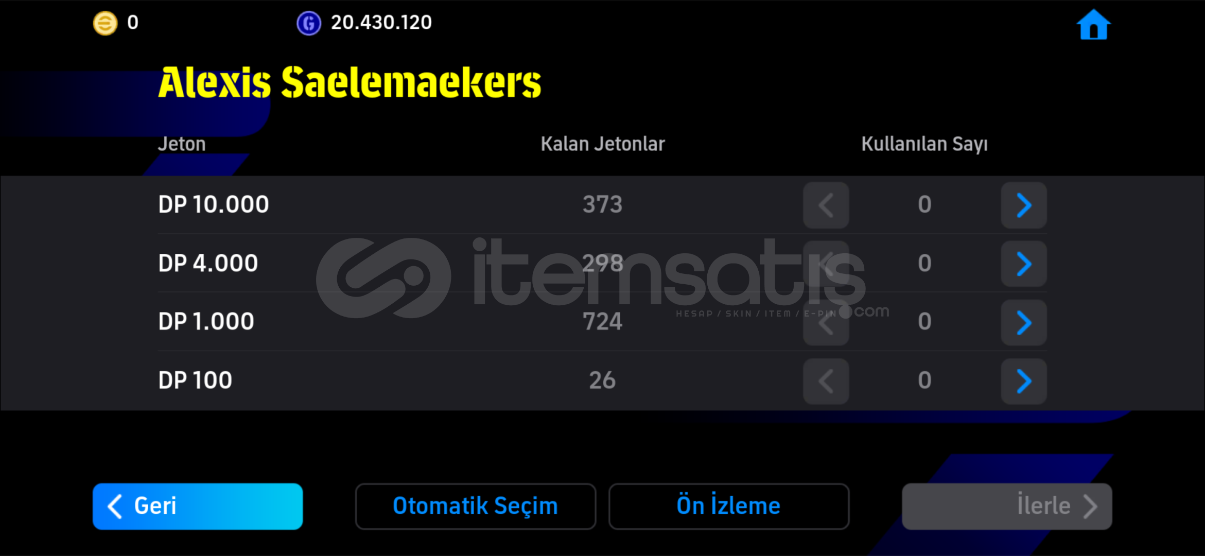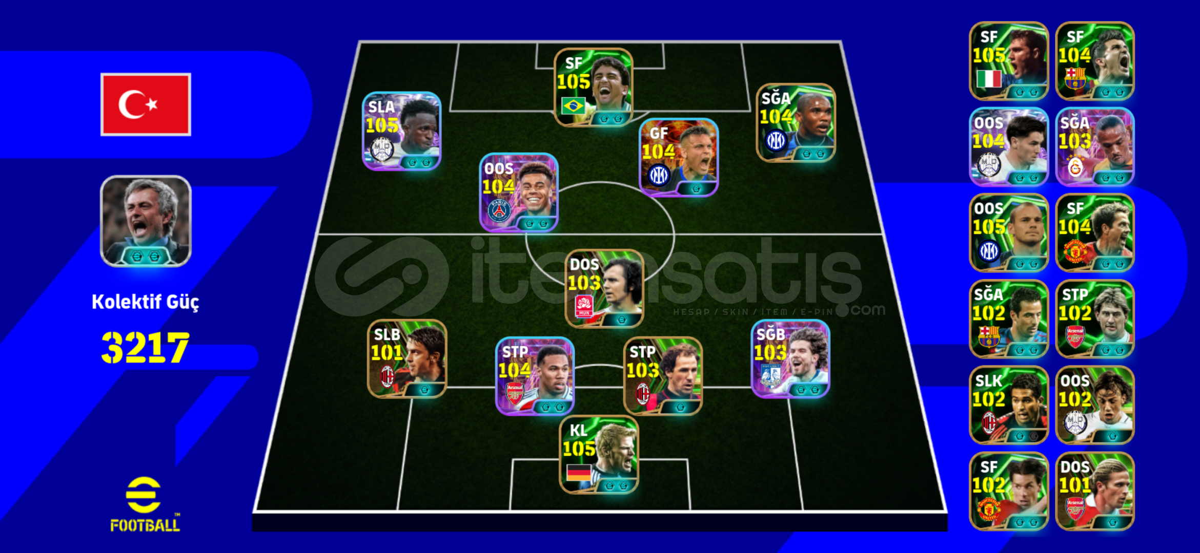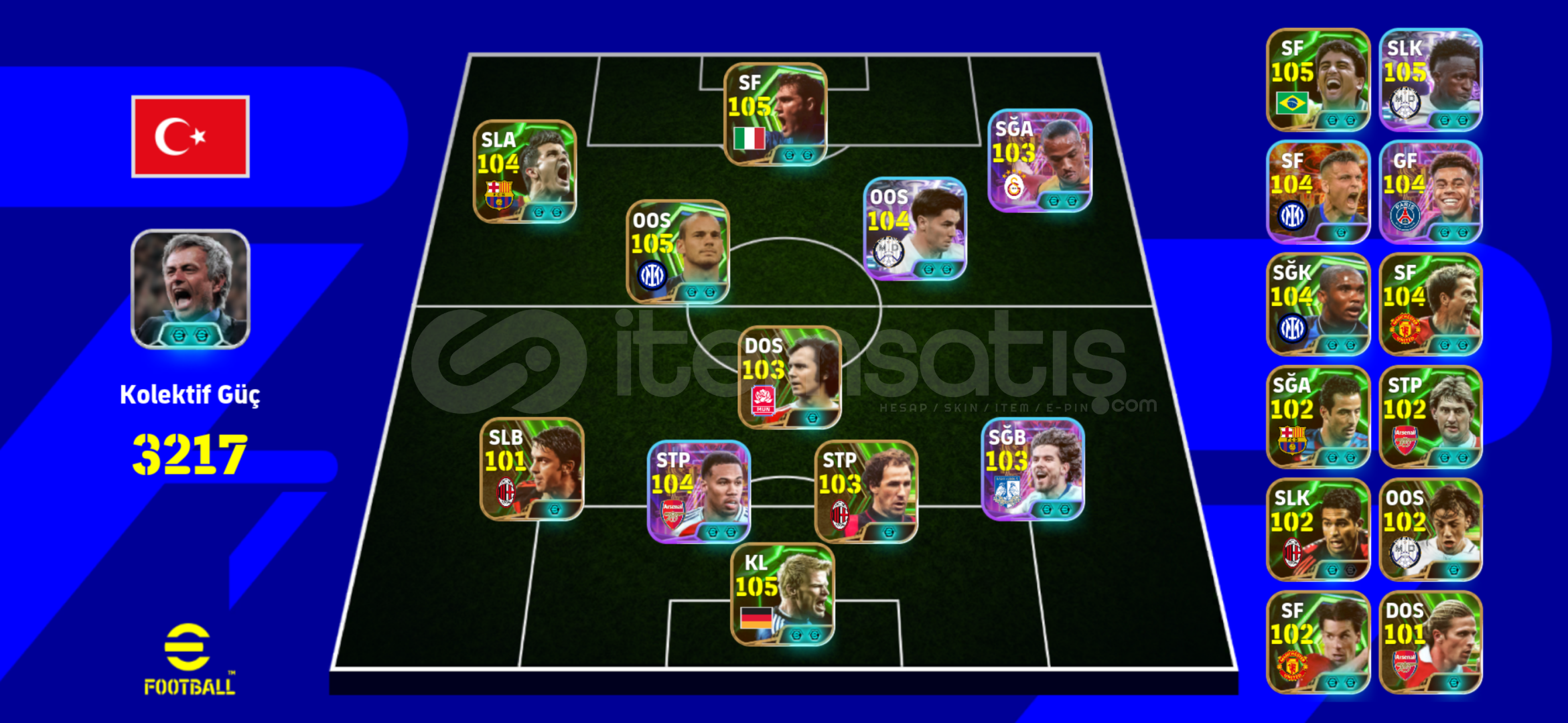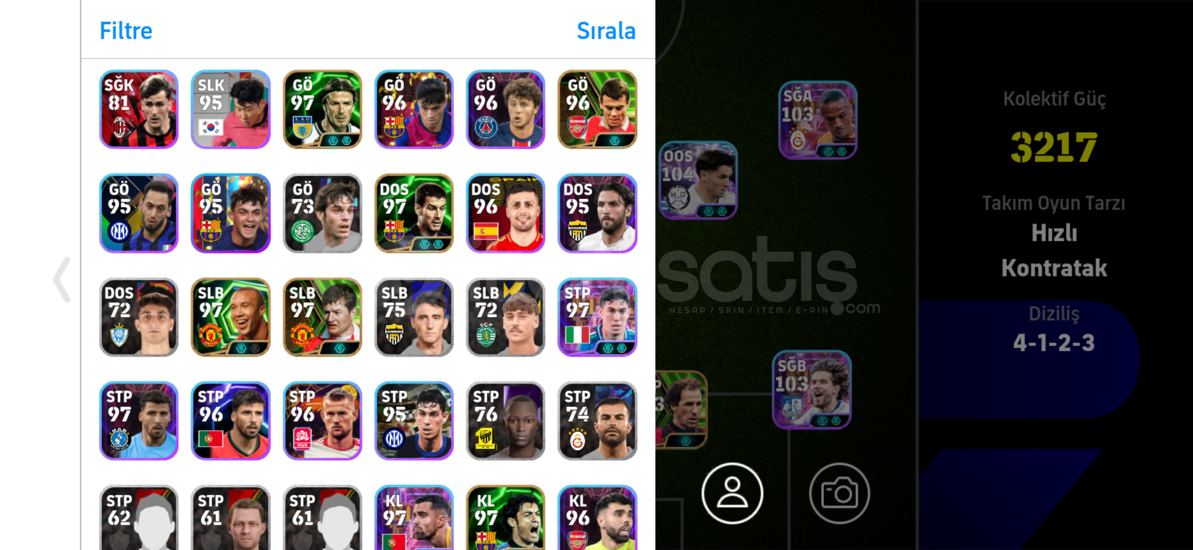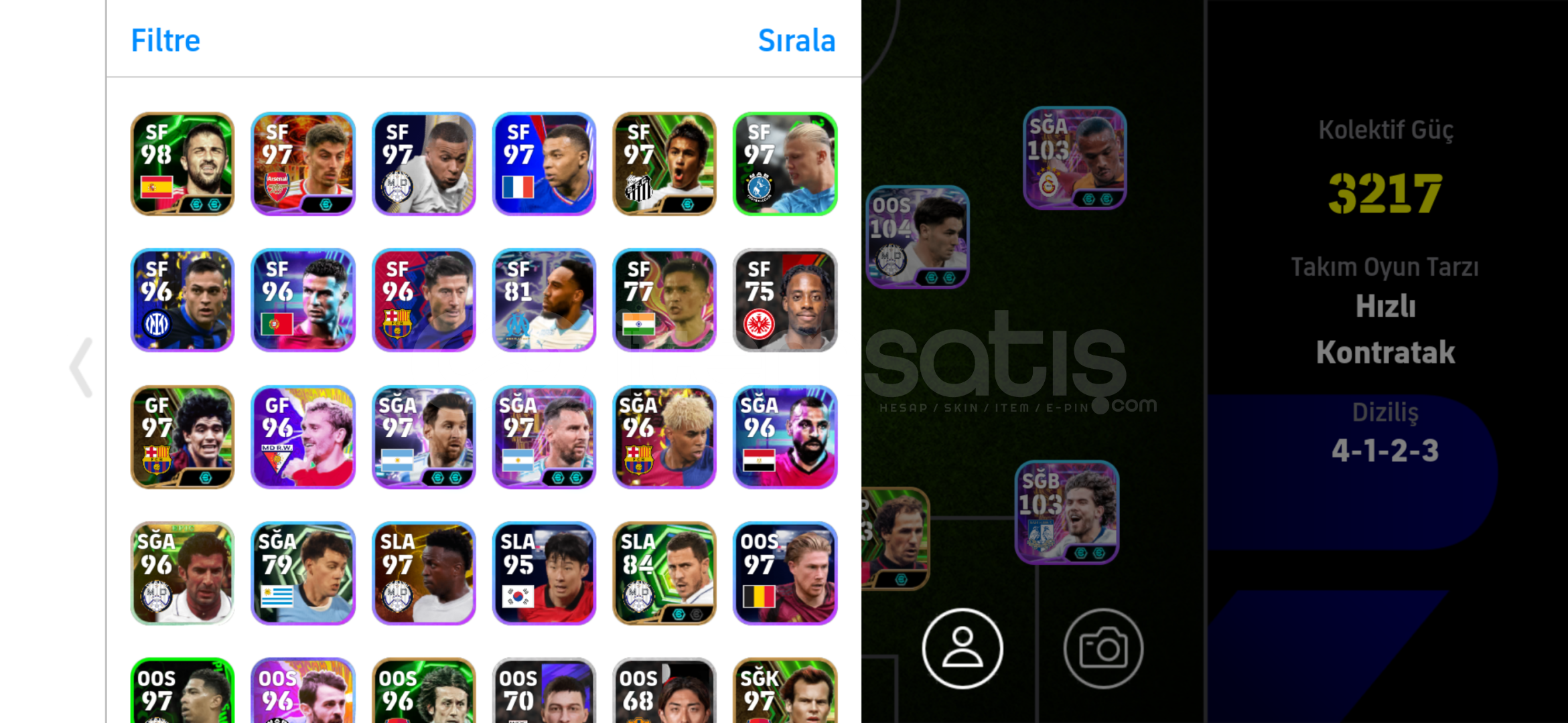 HESAP HAKKINDA: 4 BOMBACILITek bağ 3217KG (KONAMI ID) efsane hesap!E posta değişir!Güçlendiriciler ayarlandıktan sonra 3220+kg olur! Bol bol Epic, Showtimes, özel menajarler ve sağlam kartlar mevcut!Güzel fiyata efsane hesap çok durmaz kaçırma!103 SANE(BOMBACI)💣106 CHRİSTİAN VİERİ(BOMBACI VE KAFACI)💣104 BRAHİM DİAZ(BOMBACI)💣104 DAVİD VİLLA(BOMBACI)&#...