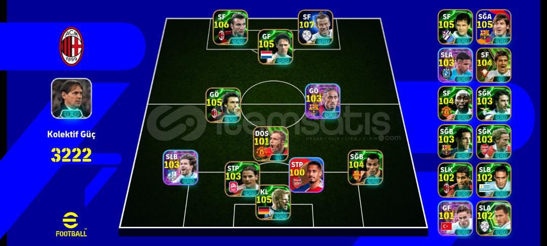Hesap tek bağ eski oyuncular vardır nadirG. BaleNakamuraCafuFerdiPirloBaggioShvcenkoFioreRaphinha