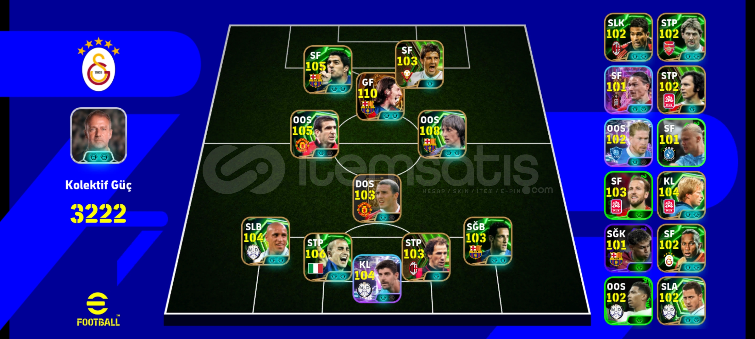 110 Messi,105 Cantona,105 Suarez,106 cannovaro,105 Carlos,103 baresi,108 cruyf,104 John o shea ve birçok oyuncu fırsat hesap