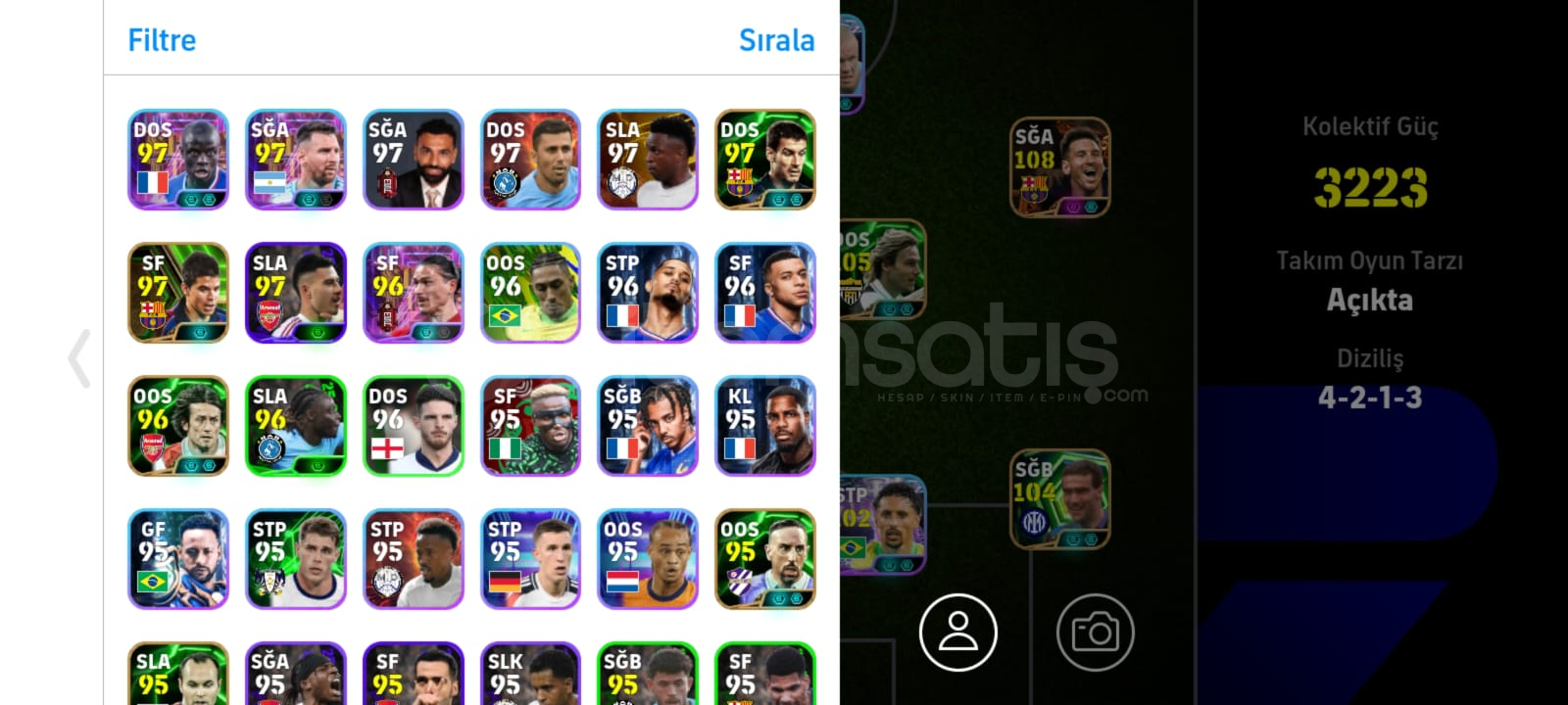 Hesap göründüğü gibi 108 messi var ilk 11 mükemmel iyi iOS tek bağ android kesinlikle ölü bağdır herhangi bir sıkıntı olmaz sizin üzerinize yapılır hesap