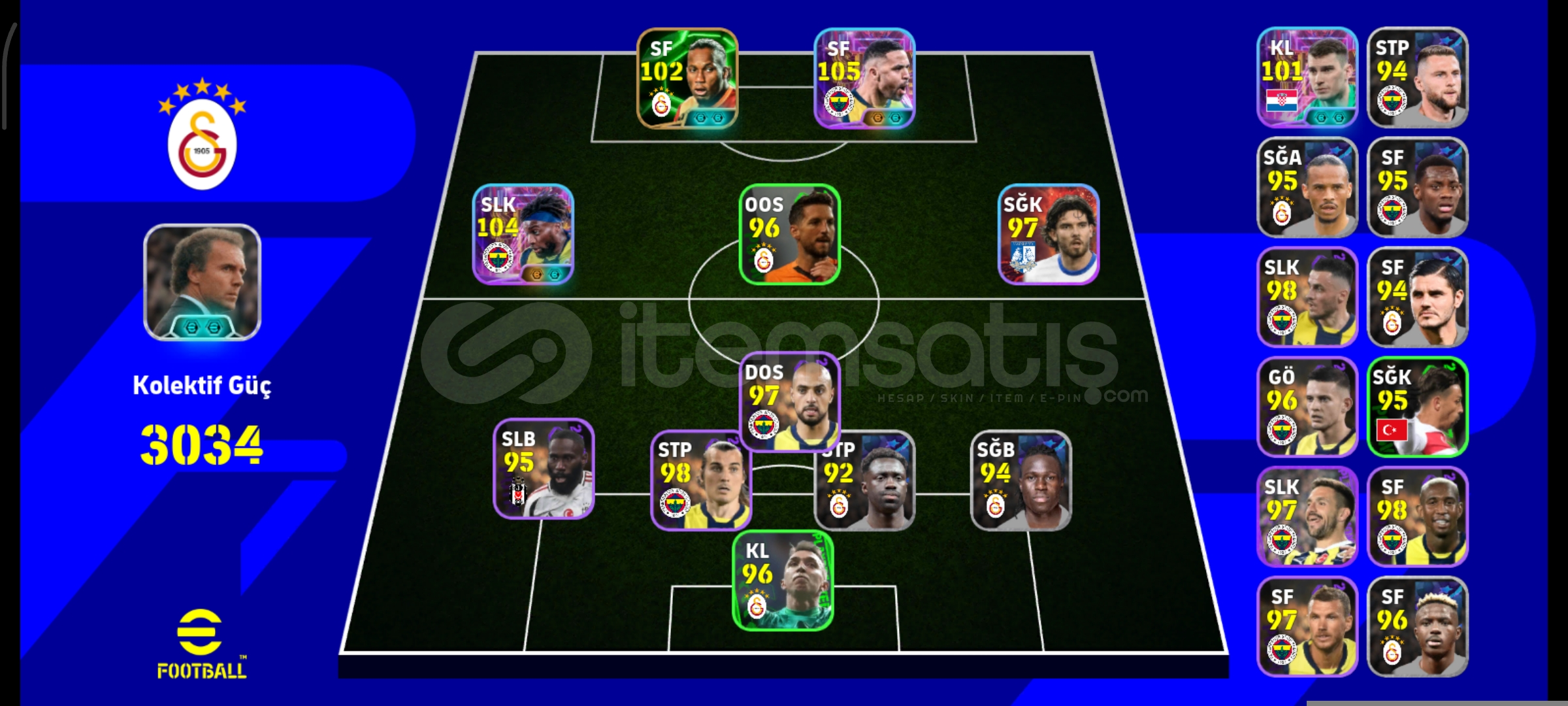 ⭐ HESABIN ÇOK GÜÇLÜ SÜPER LİG KADROSU MEVCUTTUR.(105 NESRY 104 MAXİMEN GİBİ ÖZEL OYUNCULAR VARDIR)