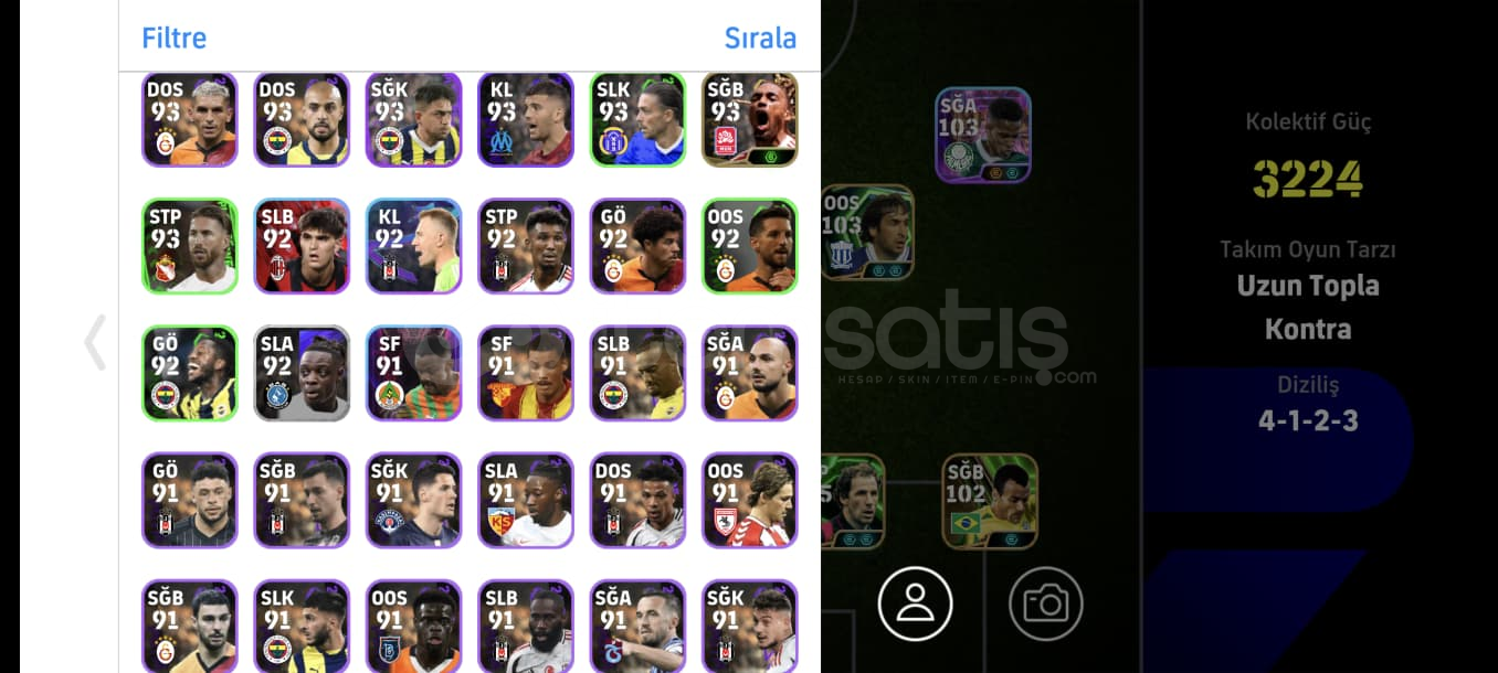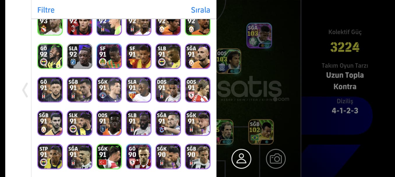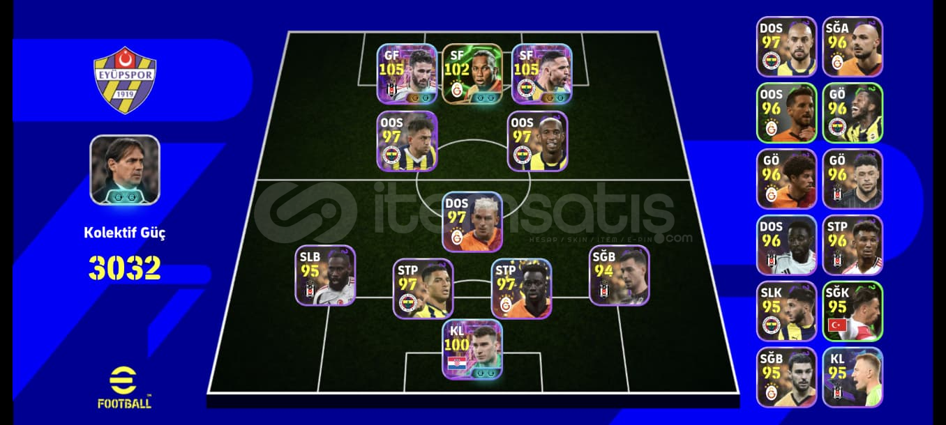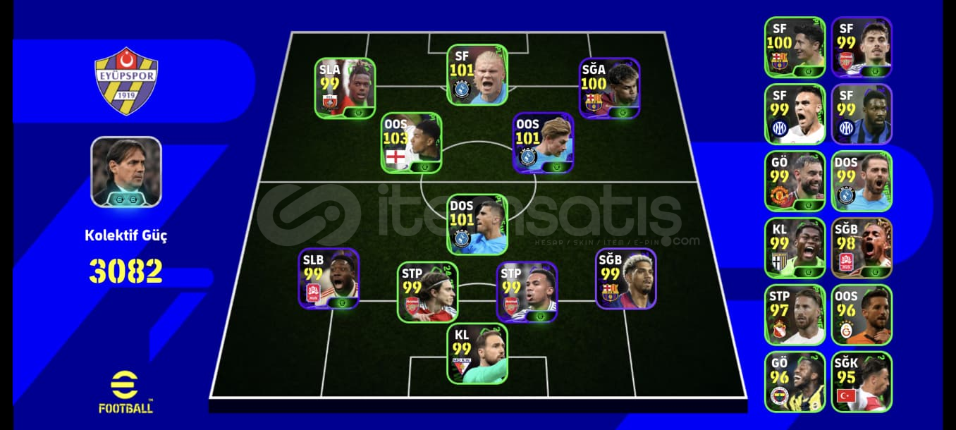 Hesap gördüğünüz gibidirTek bağdırRezervi doludur full potw ve full süper lig kadroları bile oluşabiliyorÇok sağlam paralı güzel kartlar vardır4 adet özel menejer vardırOYUNUN EN İYİ SFLERİNDEN CANLA BAŞLA BİTİRİŞ 106 ETOOYUNUN EN İYİ SFLERİNDEN CANLA BAŞLA BİTİRİŞ 106 MBAPPEOYUNUN EN İYİ KALECİLERİNDEN 105 SCHM...
