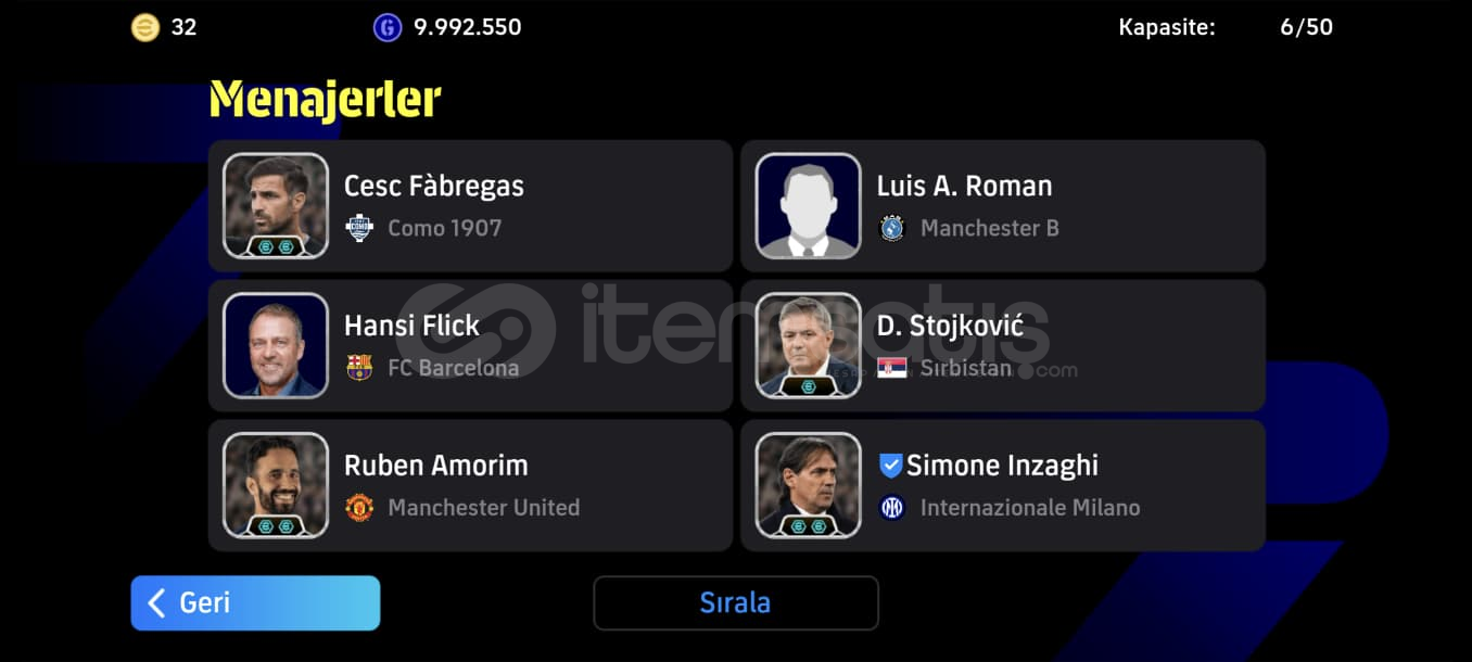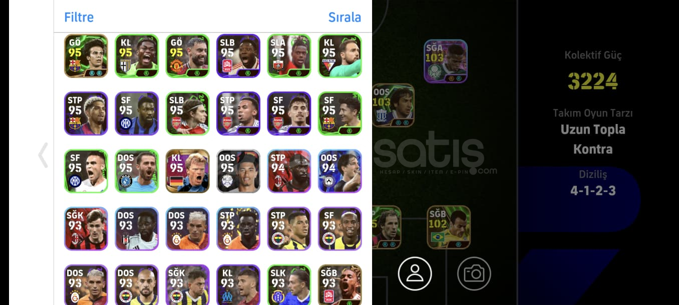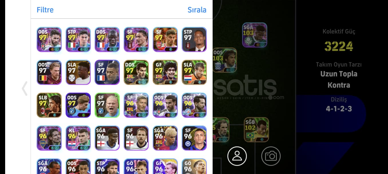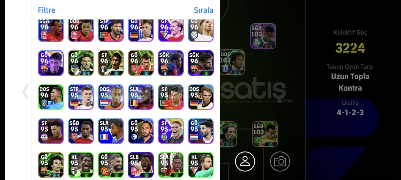 Hesap gördüğünüz gibidirTek bağdırRezervi doludur full potw ve full süper lig kadroları bile oluşabiliyorÇok sağlam paralı güzel kartlar vardır4 adet özel menejer vardırOYUNUN EN İYİ SFLERİNDEN CANLA BAŞLA BİTİRİŞ 106 ETOOYUNUN EN İYİ SFLERİNDEN CANLA BAŞLA BİTİRİŞ 106 MBAPPEOYUNUN EN İYİ KALECİLERİNDEN 105 SCHM...