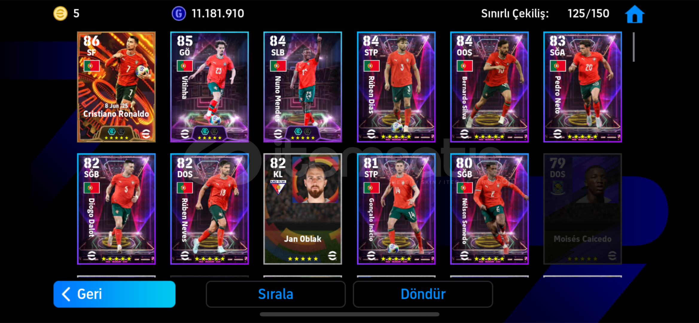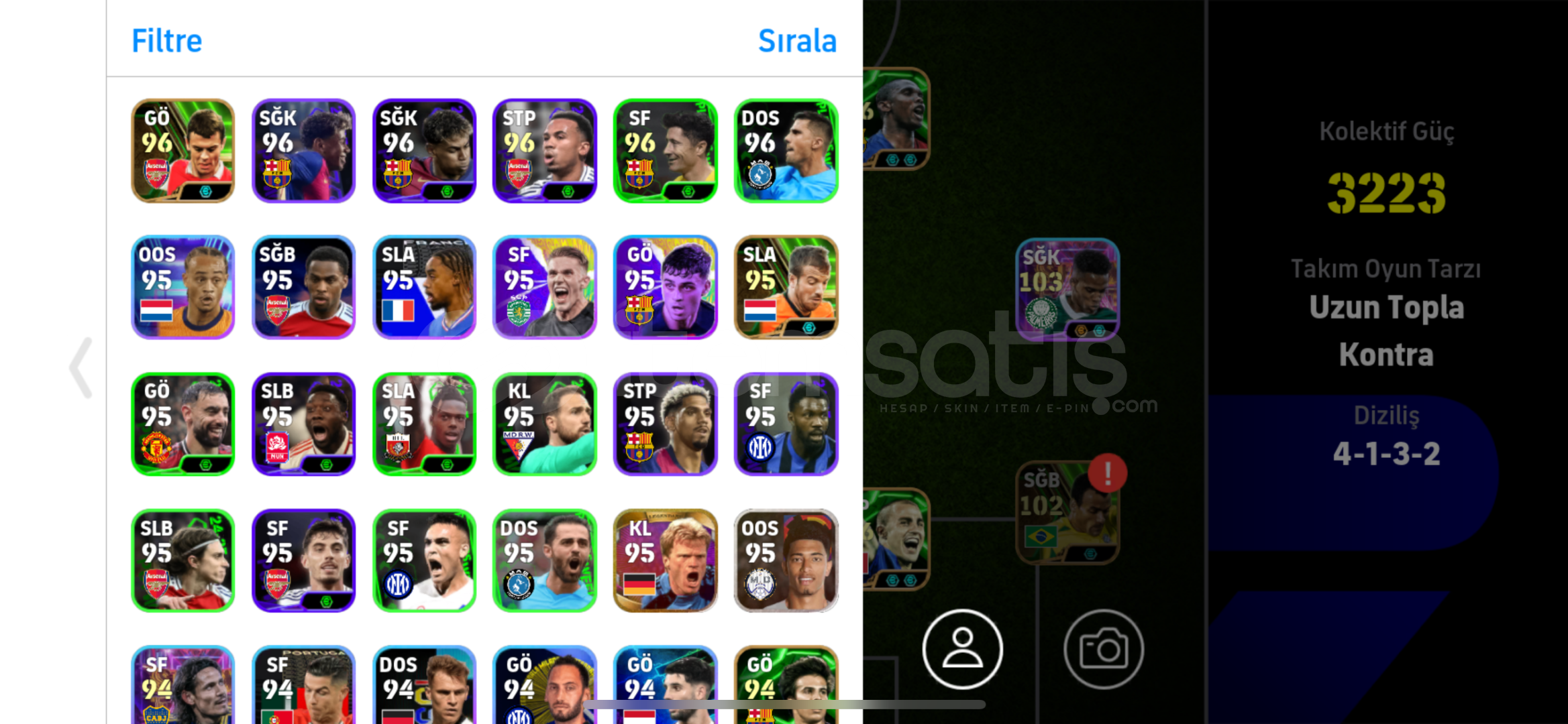 Öncelikle arkadaşlar hesabımız çok güzel bir hesap sitenin en iyilerinden hesap tek bağ - mc yoktur hesaba ronaldo paketine 25 adet sane paketine 10 adet Messi paketine 10 adet basılmıştır 5 K ya yakın Mc yatırılmıştır şanslı bir hesaptır. Yatırıldına dağil paket fotoları konulmuştur bakınız Oyunun en hızlı forvetleri burda🏹106 etoㇿ...