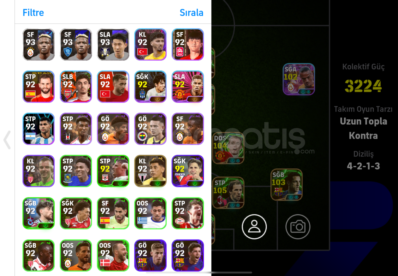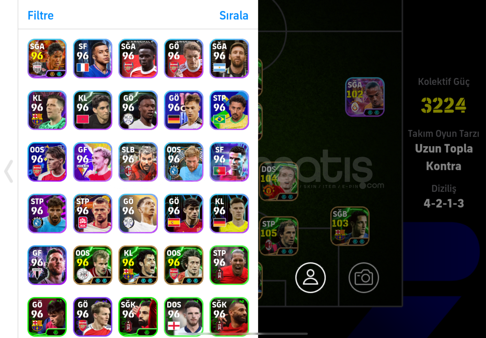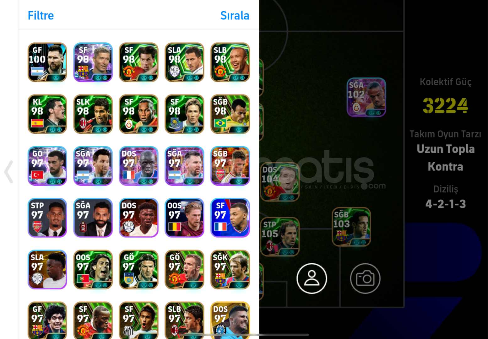 HESABIMIZ TEK BAĞDIR.SNEİJDER CARLOS GİBİ DEĞERLİ KARTLAR MEVCUTTUR.CAPELLO MOURİNHO ALONSO GİBİ TDLER VARDIR.EKSİ MC YOKTUR.REZERVDE GÖRDÜĞÜNÜZ GİBİ BAYA OYUNCU MEVCUTTUR.ALMADAN ÖNCE DMDEN YAZINIZ.ALANA HAYIRLI OLSUN.BOMBACI OLARAK BURAK YILMAZ LEROY SANE VARDIR.