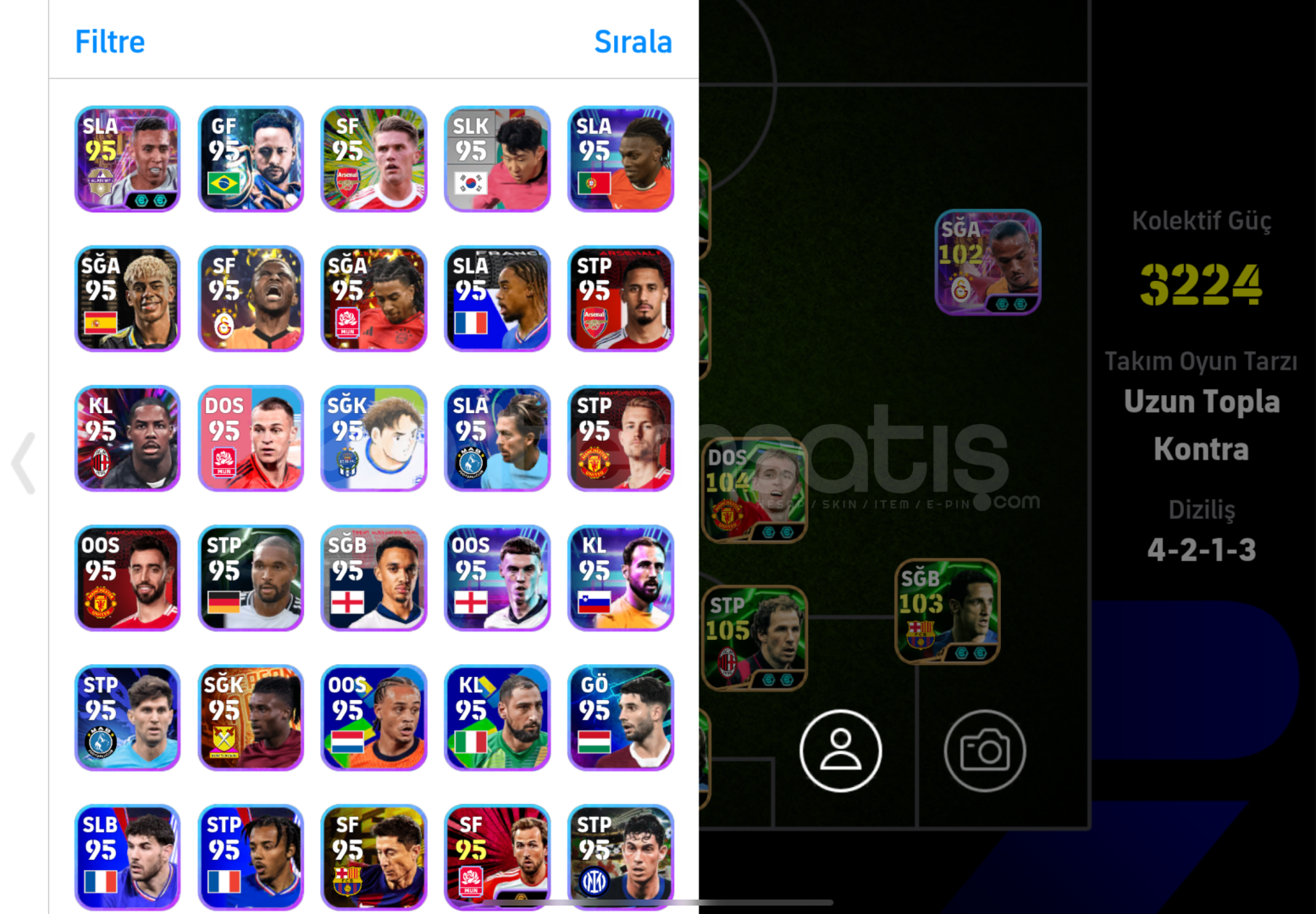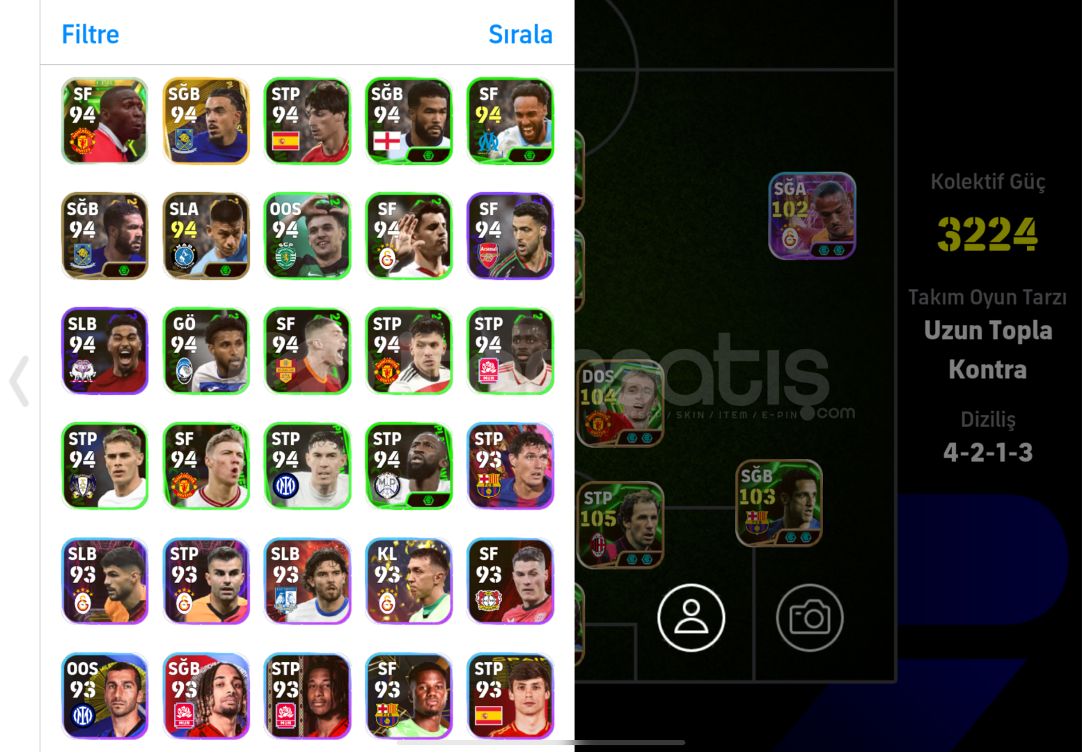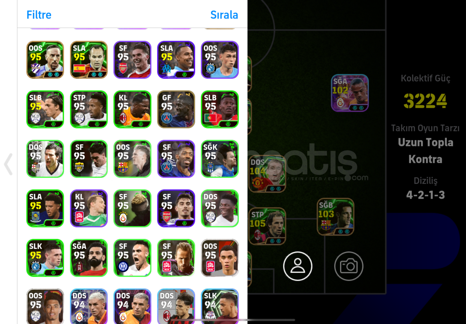 HESABIMIZ TEK BAĞDIR.SNEİJDER CARLOS GİBİ DEĞERLİ KARTLAR MEVCUTTUR.CAPELLO MOURİNHO ALONSO GİBİ TDLER VARDIR.EKSİ MC YOKTUR.REZERVDE GÖRDÜĞÜNÜZ GİBİ BAYA OYUNCU MEVCUTTUR.ALMADAN ÖNCE DMDEN YAZINIZ.ALANA HAYIRLI OLSUN.BOMBACI OLARAK BURAK YILMAZ LEROY SANE VARDIR.