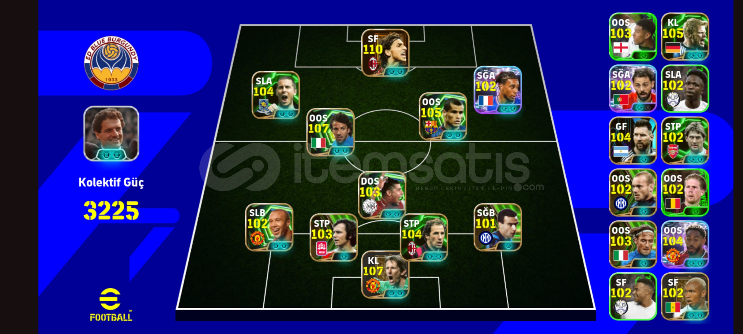 110 ibra 107 del piero 107 Van de sar 105 rivaldo hesaba para yatırılmıştır 3 bombacı 1 low secremar vardır