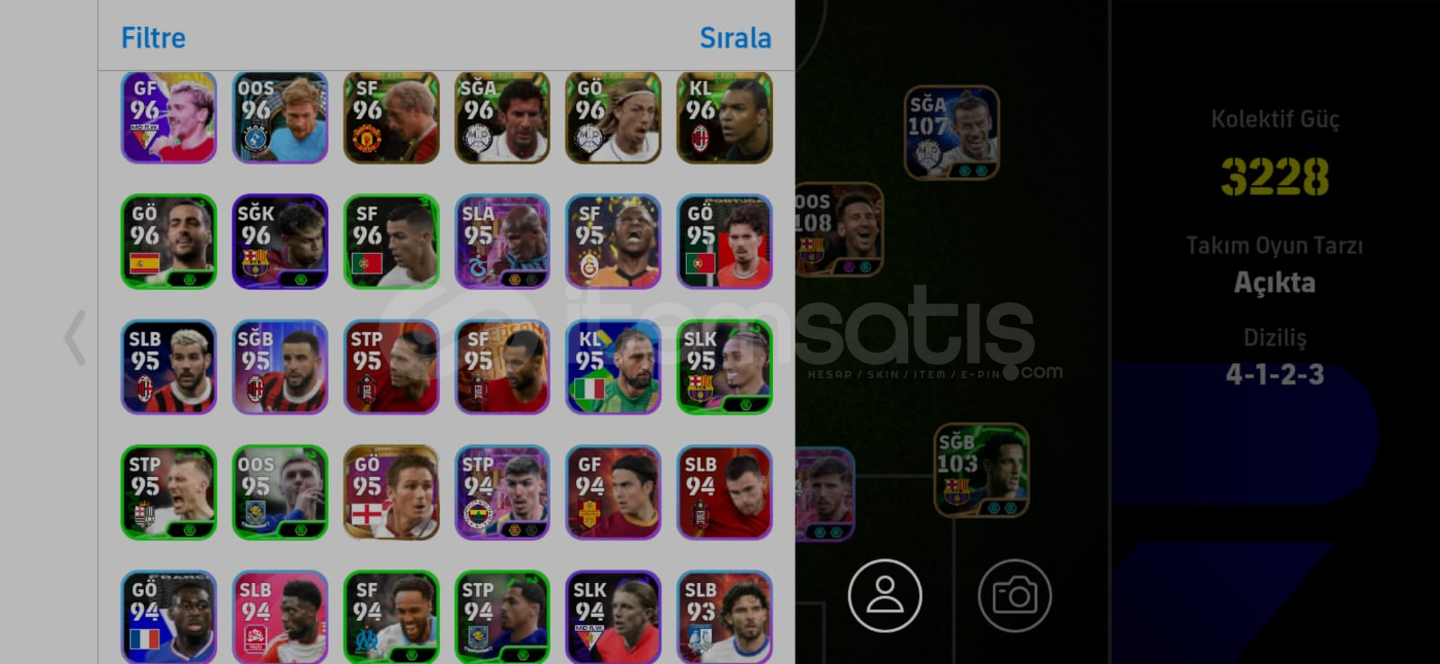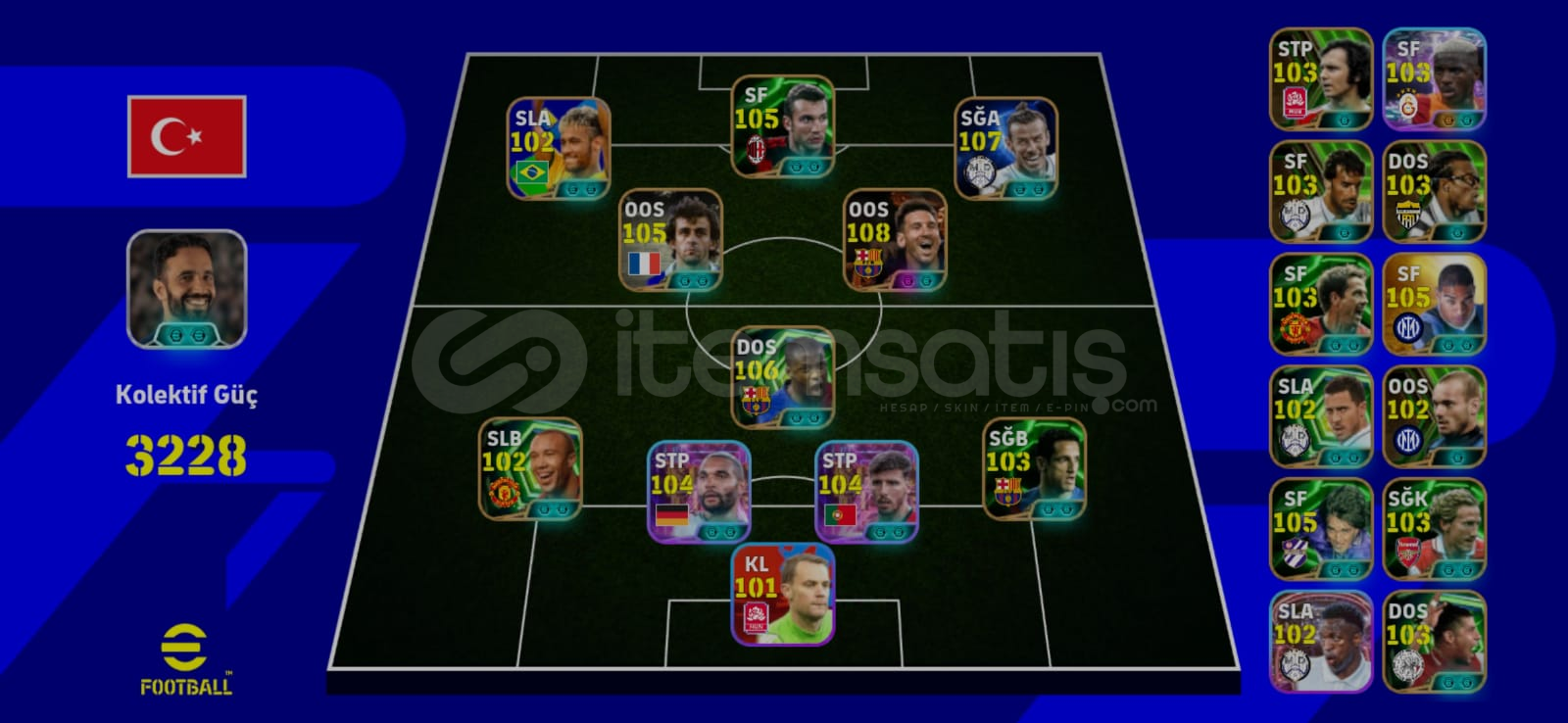 Hesap 3228 Kg 108 Messi 107 bale 106 Yaya toure 105 batistuta ve bir sürü paralı oyuncu.Hesap tek bağ ve eksi MC kesinlikle yok.Cuzzam miktarda pazarlık tabiiki sünnet. Hesabı alana iyi oyunlar derim