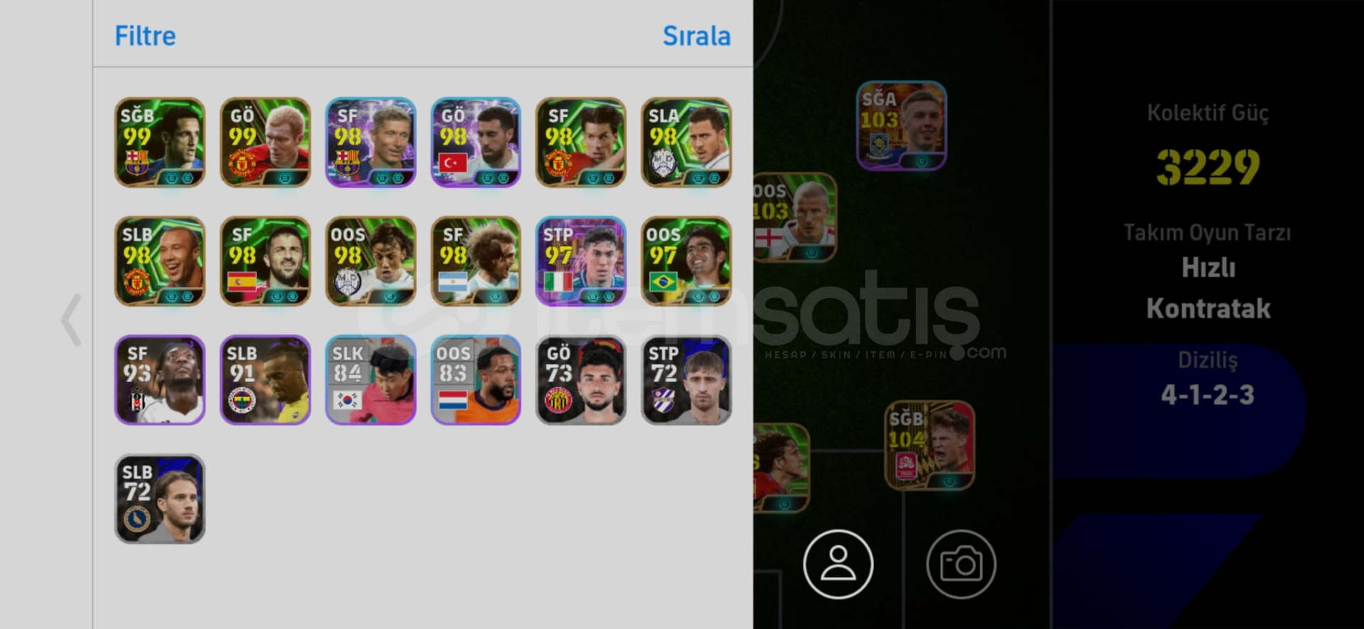 3229 Takım Gücü 6 Adet Teknik Direktör Rezervde Çok Güzel Yüksek Kolaktifli Oyuncular Her Pozisyona Uygun Yedek Kart Efsane bir hesap Tek Bağ Konami Sizin Mailinize Aktarılır