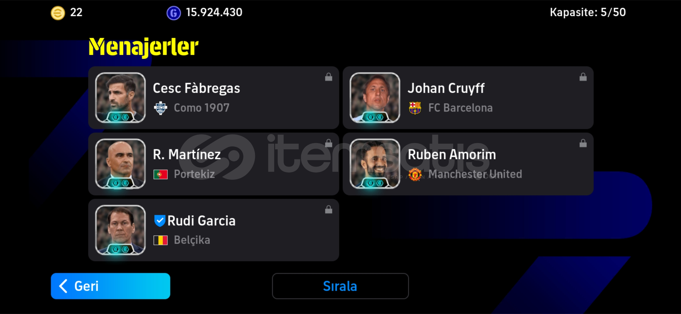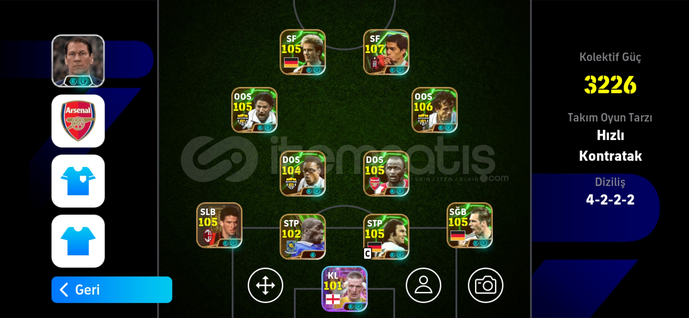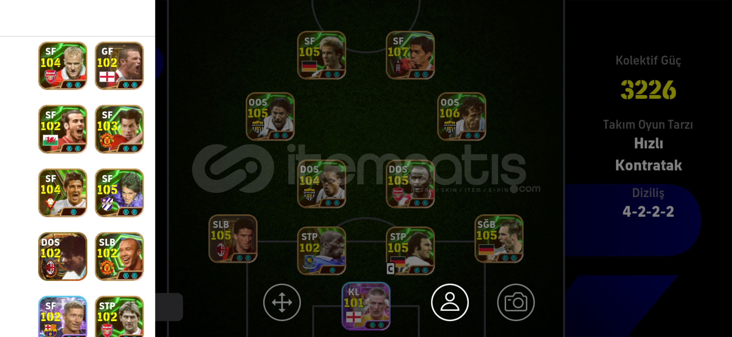 Hesap tek bağdır-mc yoktur Hesaptaki Bazı Değerli Kartlar:108 Suarez106 Platini 105 Del Piero (Bombacı)105 Rummenige 105 Bergkamp (Bombacı)105 Lahm 105 Panucci 105 Vieira 105 Batistuta 104 David Villa 104 Edgar Davids 103 David Villa 103 Ruud van Nistelrooy 102 Rijkaard (Bigtime)102 Ruud van Nistelrooy (Bigtime)102 Rooney 102 Bale (Bombacı)102 Makelele 102 Lewandovski 102 Tony Adams 102 Messi 102 Pep Guardiola 102 Hazard 102 Endrick 102 Silvestre 102 Salah 101 ...