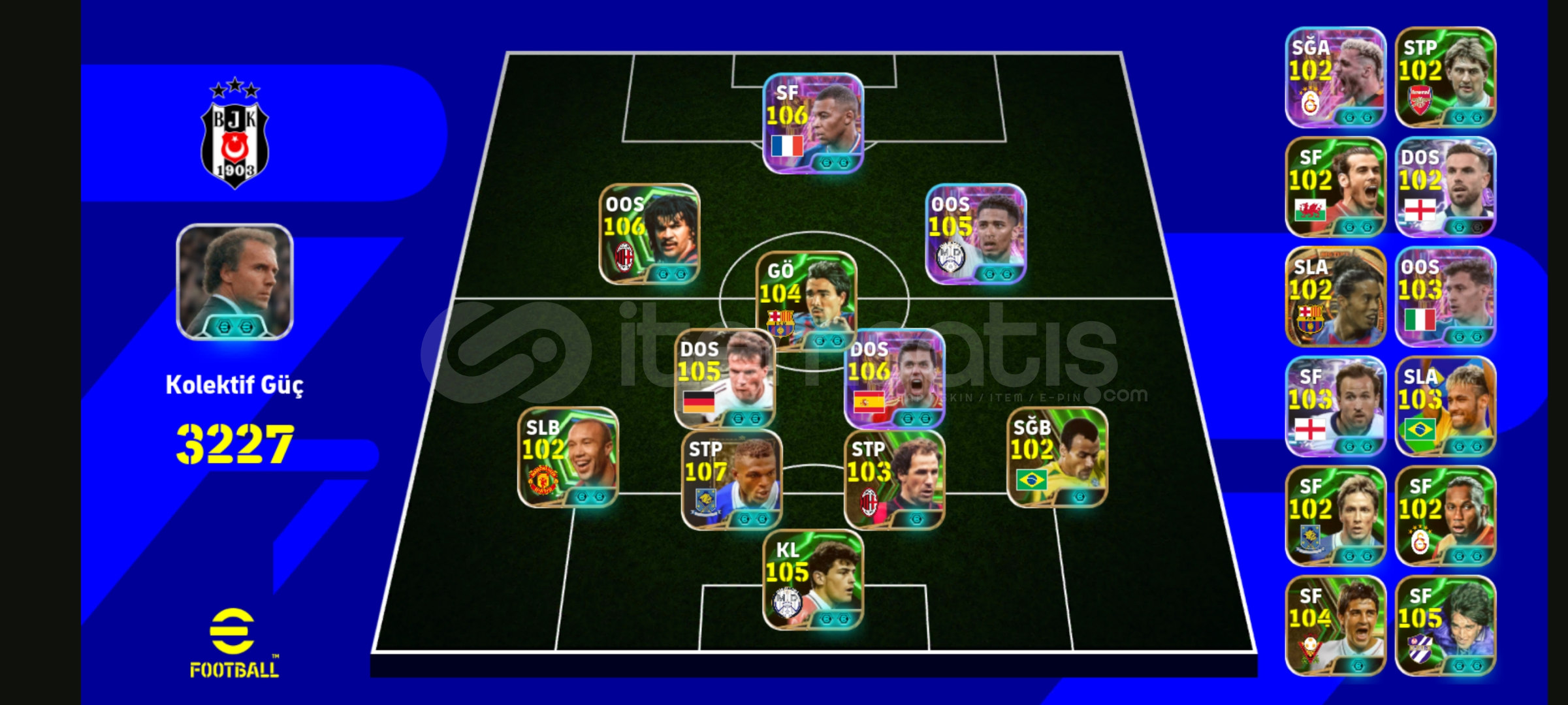Hesapta 5 tane bombacı bulunmakta Mbappe⭐⭐Burak yılmaz ⭐Olise⭐Bale⭐Rafa Silva⭐Bazı oyuncularMbappe⭐⭐Gulit⭐Rodri⭐Casillas⭐Matthaus⭐Deco⭐Bellingham⭐Desailly⭐Barïs Alper yılmaz⭐Nicolo barella⭐Baersi⭐Cafu⭐Roberto carlos⭐5 özel menajer ⭐Temiz değişir İlerde alınacak Oliver kahin secmelisiyle dahada artan ko...