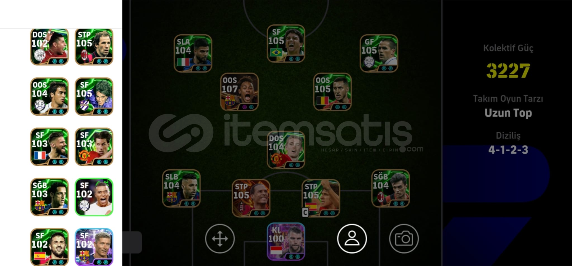 3230 KG BIG TIME 107 Neymar Jr, 105 Hazard, 105 Bebeto, 105 Puyol, 105 Baressi, 104 Maldini, 104 Jordi Alba, 105 Batıstuta, 104 Fletcher, 104 Raul, 103 Gırourd..