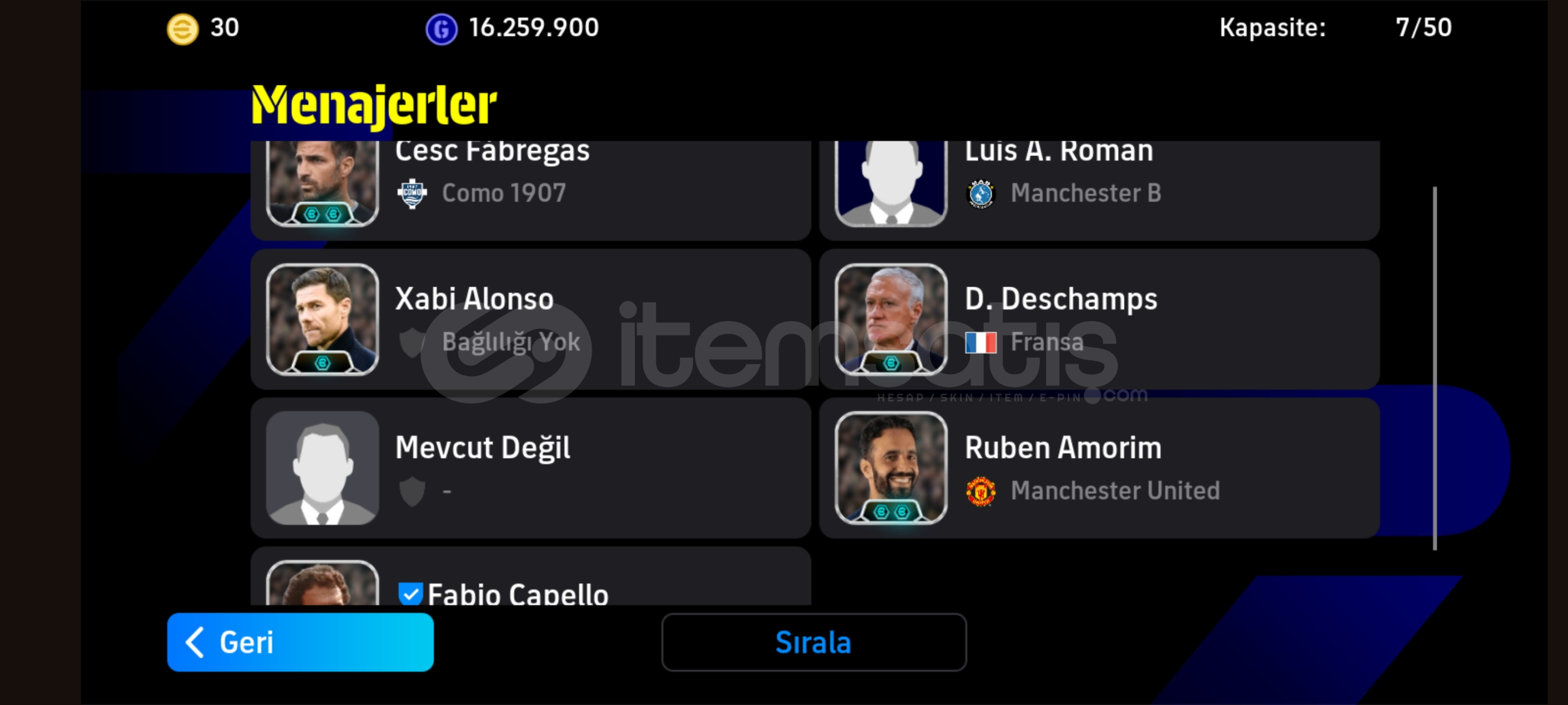 Yeni 106 Rui Costa 107 Uçak Bale 107 Thuram 106 Cannavaro 105 Oliver Kahn, Yükseltilebilir Menejerler Tek bağ ( iOS, Android) olanlar alabilir Aktif olmasam bile alabilirsiniz aktif olunup teslim edilir. PAZARLIK CUZİ MİKTARDA OLURREZERVİ BOL KLASMAN 2 HESABI