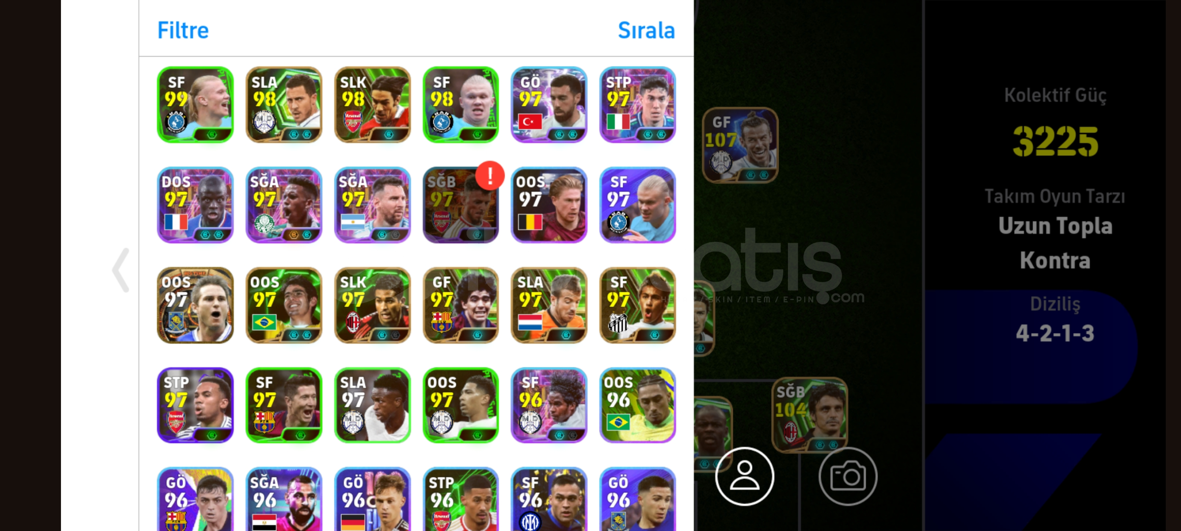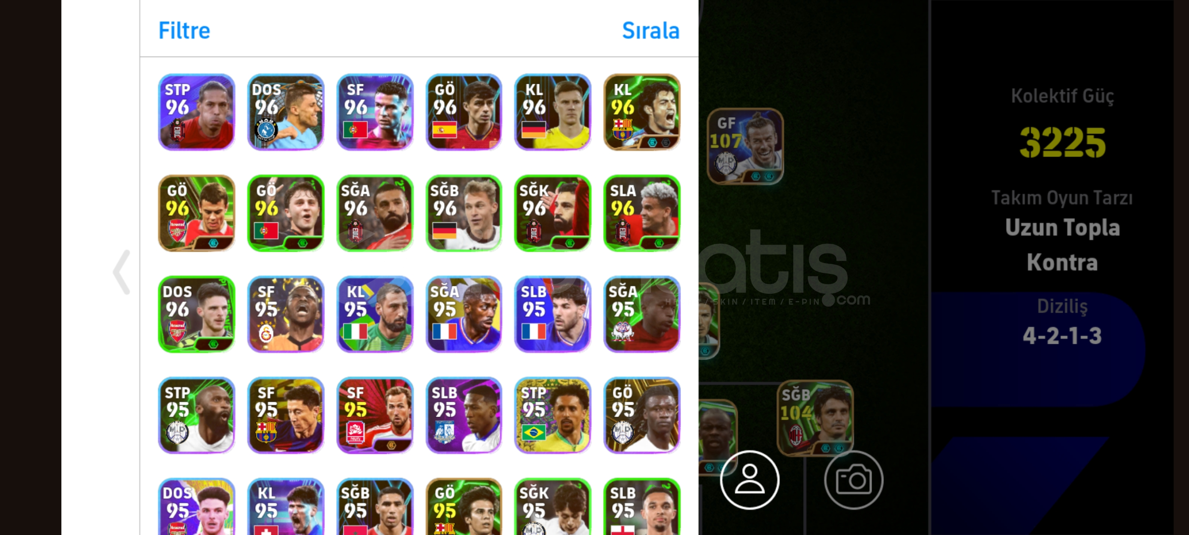 Yeni 106 Rui Costa 107 Uçak Bale 107 Thuram 106 Cannavaro 105 Oliver Kahn, Yükseltilebilir Menejerler Tek bağ ( iOS, Android) olanlar alabilir Aktif olmasam bile alabilirsiniz aktif olunup teslim edilir. PAZARLIK CUZİ MİKTARDA OLUR