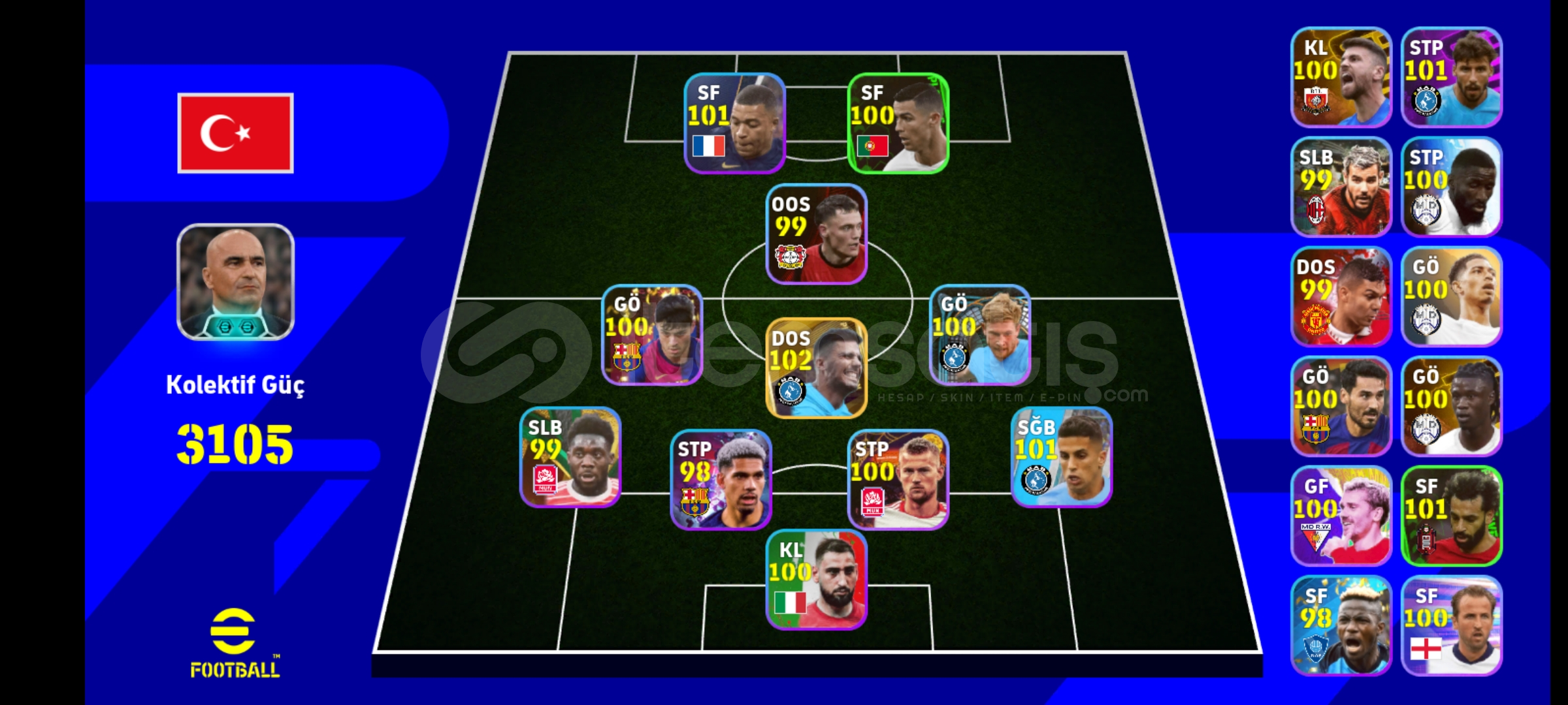 Hesap tek bağdır. Herhangi bir sorun çıkmaz.Android ve İos kontrol edilmiştir. Pazarlık yapılır.Bolca çift güçlendiricili teknik direktörü bulunmaktadır.Kilit oyuncular bulunmakta en iyi denilecek derecede oyuncular Alıcısına şimdiden hayırlı olsun.