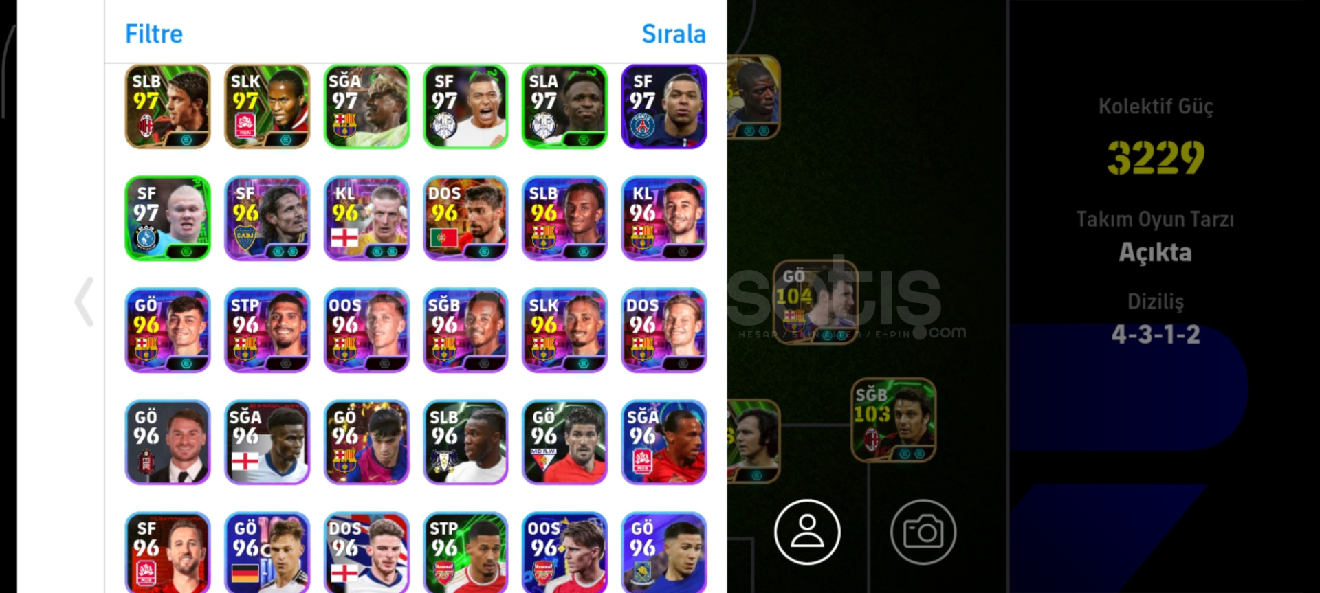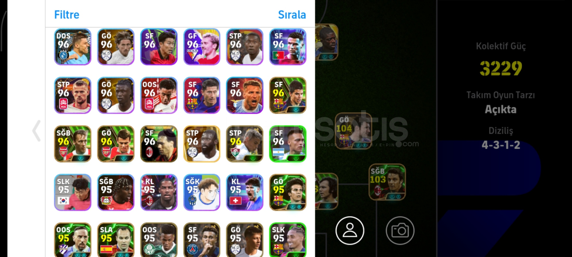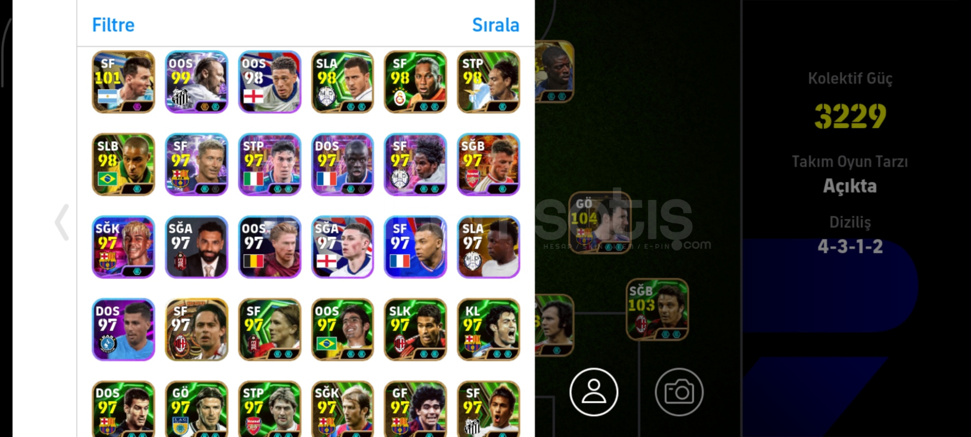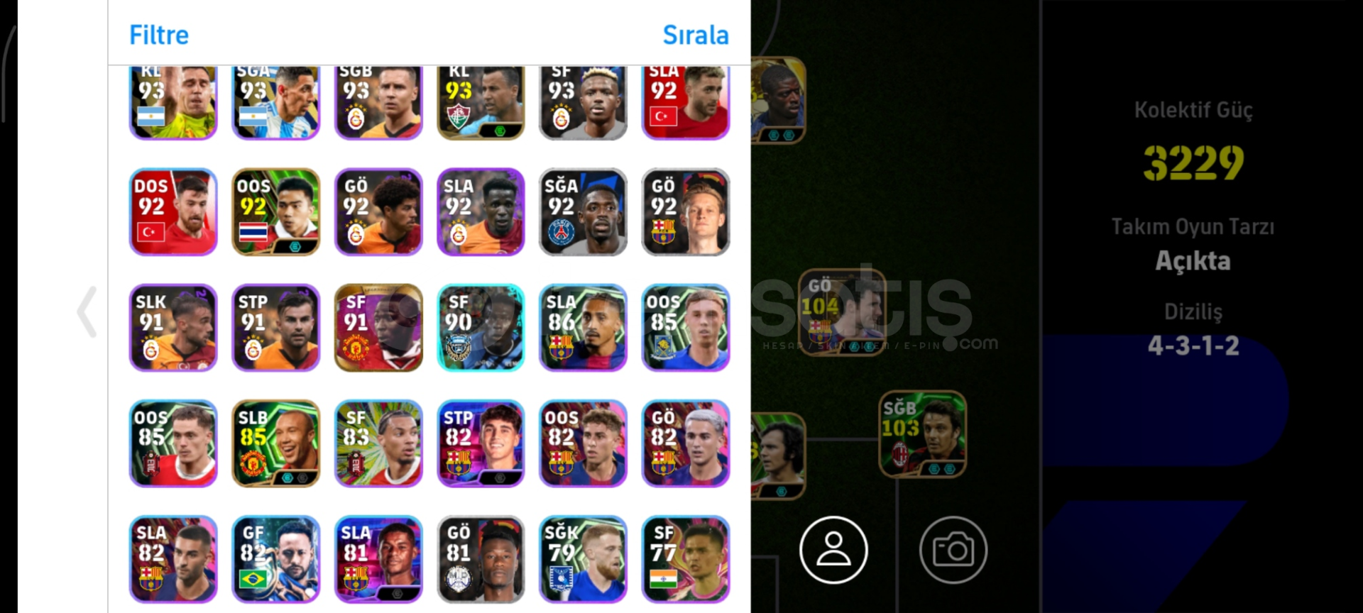 HESAP HAKKINDA: Bol bol rezerveli 3230 kg Tek bağ en yüksek kartlarla dolu efsane hesap!Bombacı 108 messi ve 104 guvardiol! Barça paketi alınmıştır!Güçlendiriciler ayarlandıktan sonra 3235+ kg olur! Bol bol Epic, Showtimes, özel menajarler ve oyunun en güçlü hücumcuları mevcut!Güzel fiyata efsane hesap çok durmaz kaçırma! ────────^...