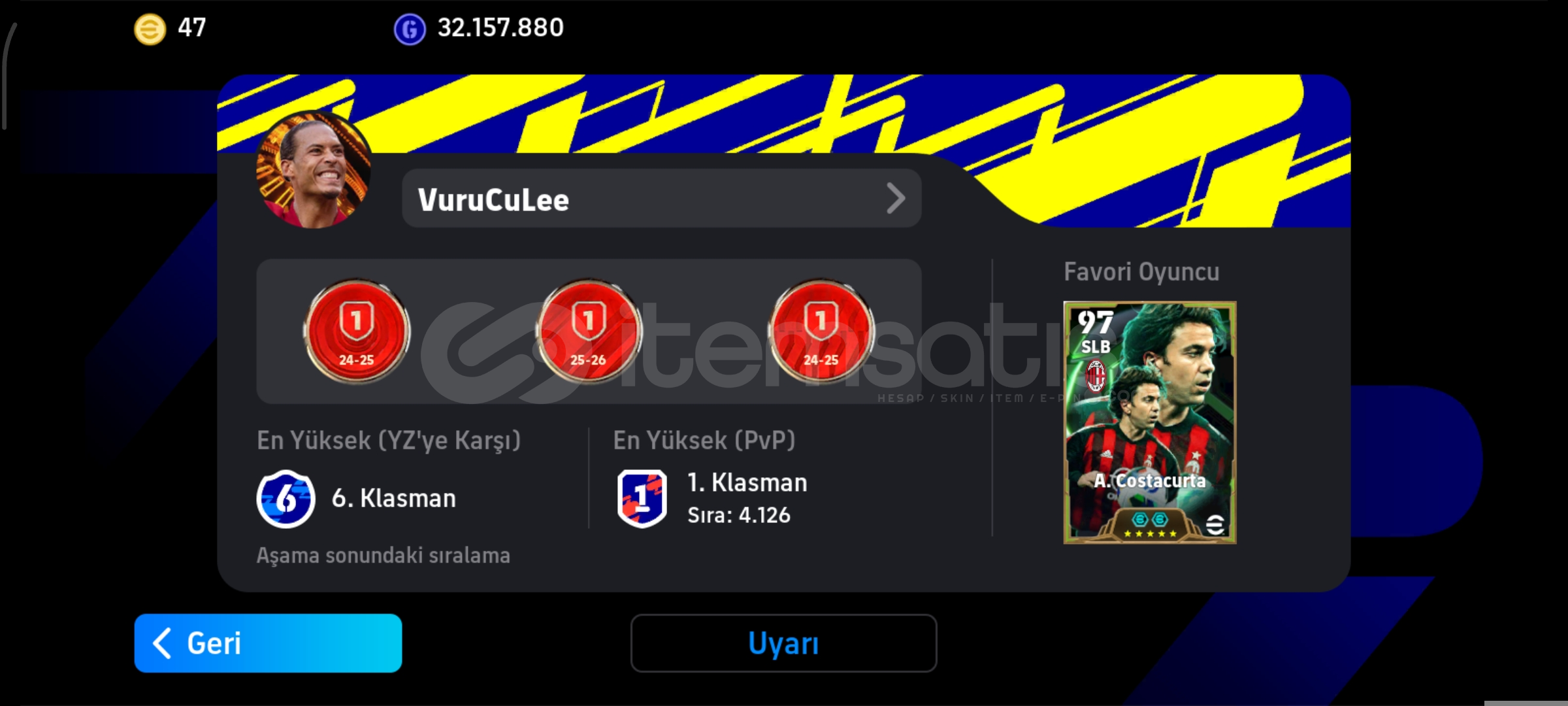 Hesap göründüğü gibidir klasmanda 4000. sırada bitirmiş efsane bir hesap hakettiği değerinde alan pişman olmaz hayırlısı olsun