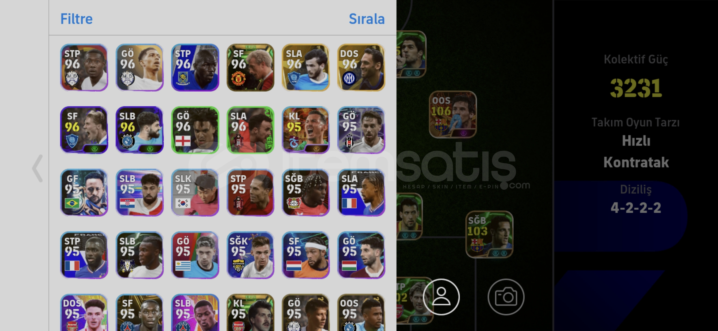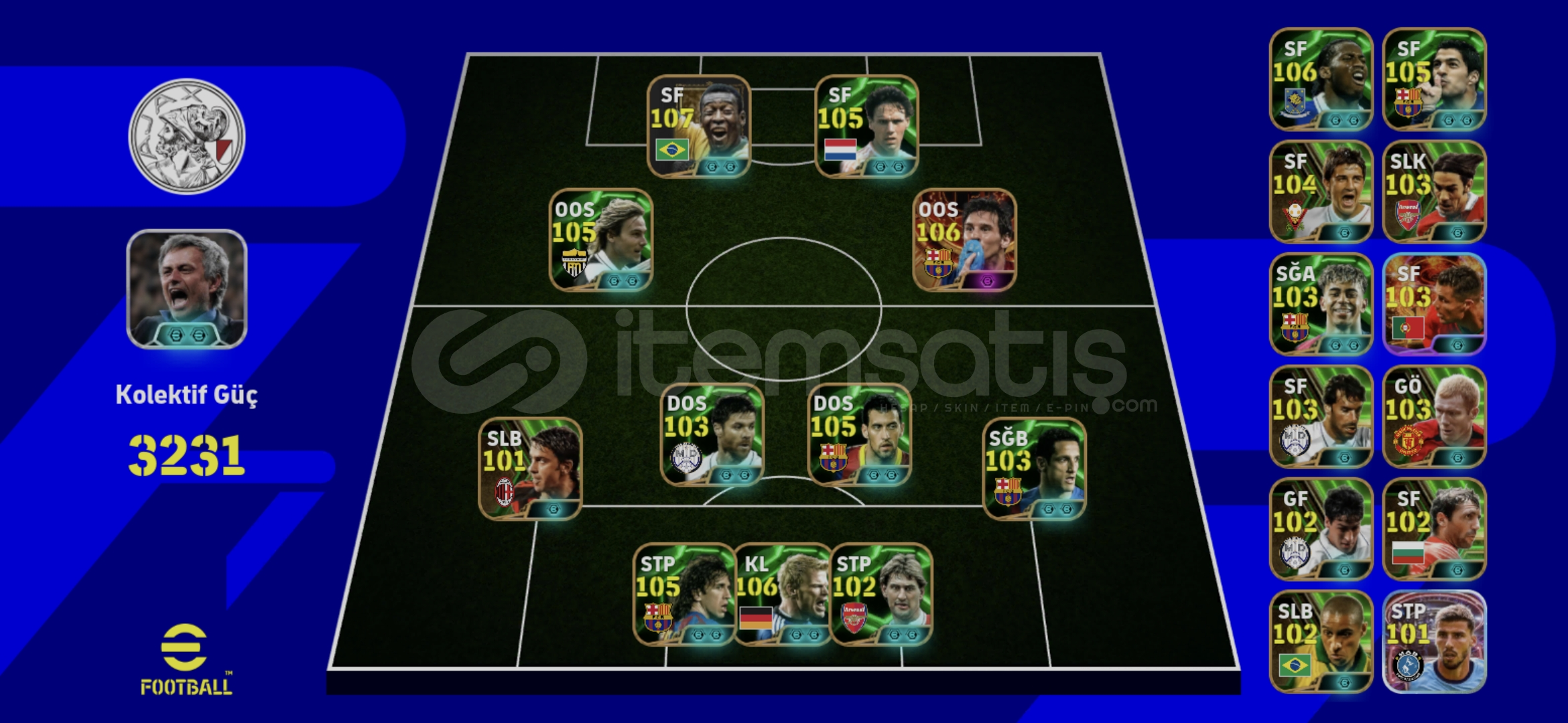 3231 İN ÜSTÜNE GÜÇLENDİRİCİLERİ DÜZGÜN BASILIRSA RAHAT ÇIKAR 108 PELE 106 DROGBA 105 AMA 106 OLUR SUAREZ 105 VAN BASTEN105 NEDVED 103 AMA 104 OLUR YAMAL 106 AYAKKABI MESSİ 105 PUYOL 105 BUSQUEST 103 XABİ ALONSO 103 RONALDO DOLU REZERV VE BOMBACI YUNUS AKGÜN