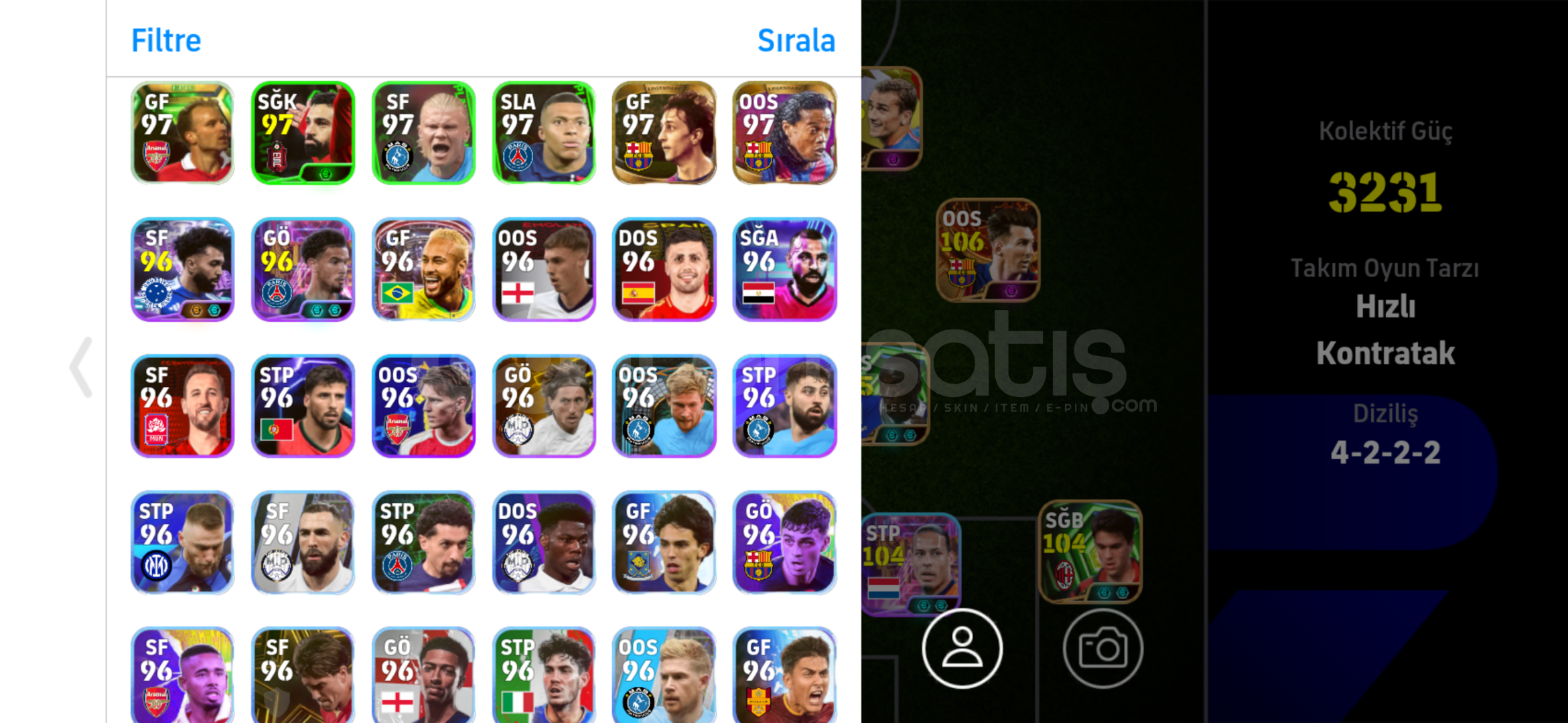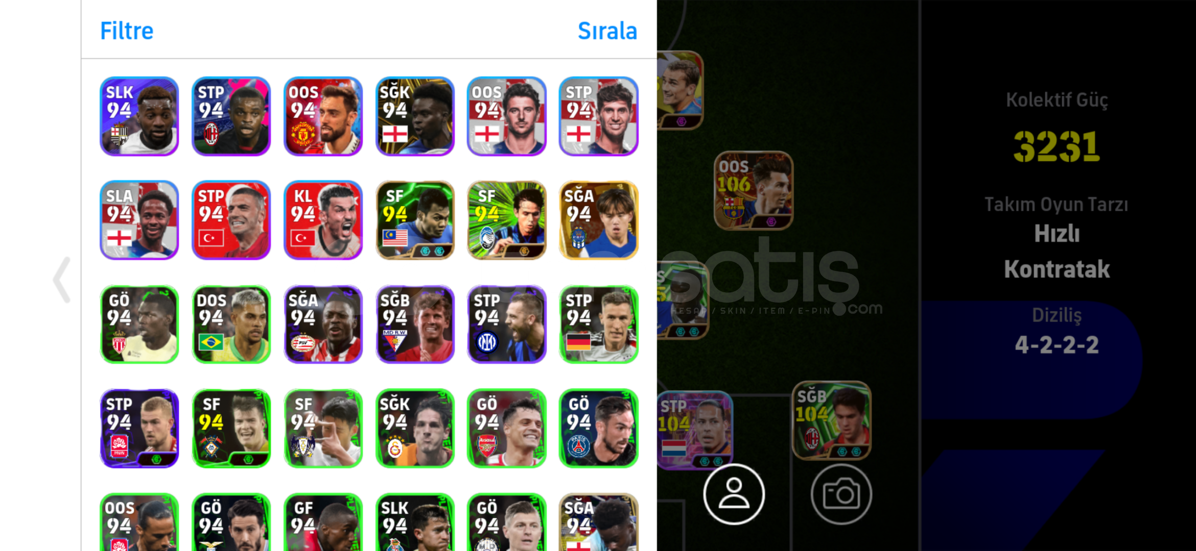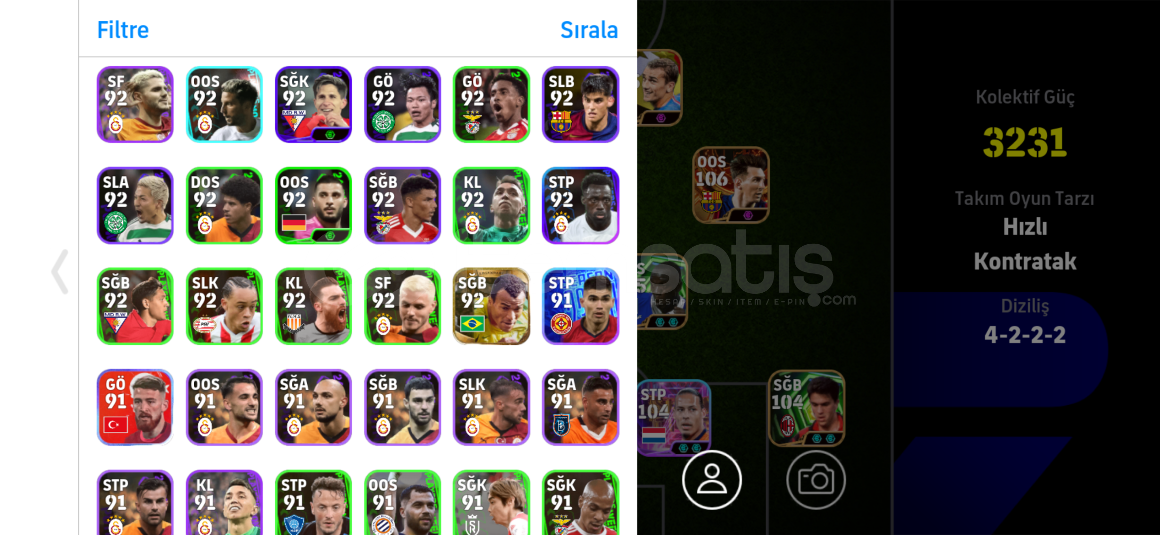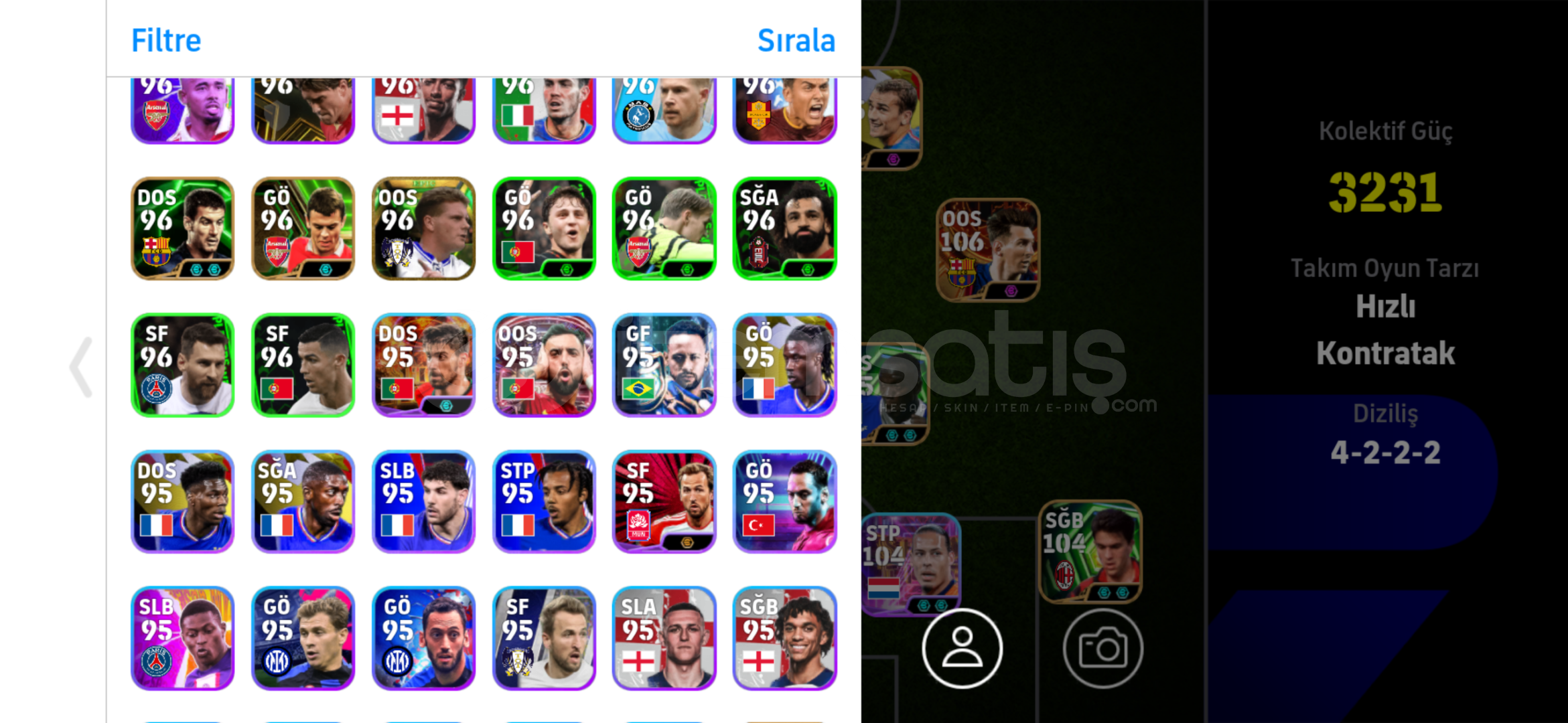 Hesabım acil satılıktır 2 bombacı var 2022 hesabı 3231 KG var full gs full ingiltere full full Türkiye takımları vardır