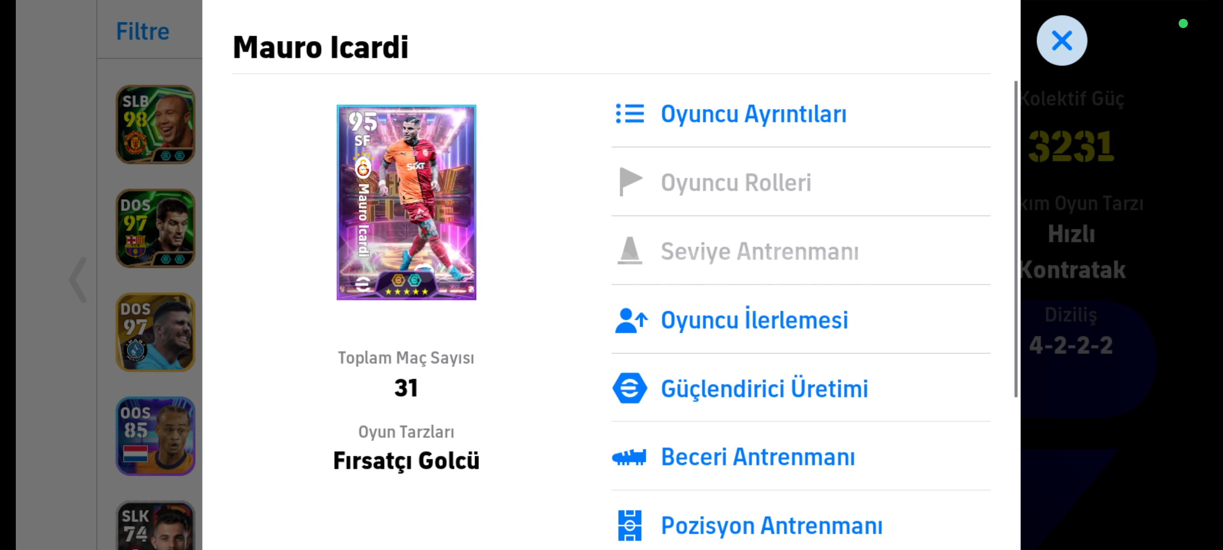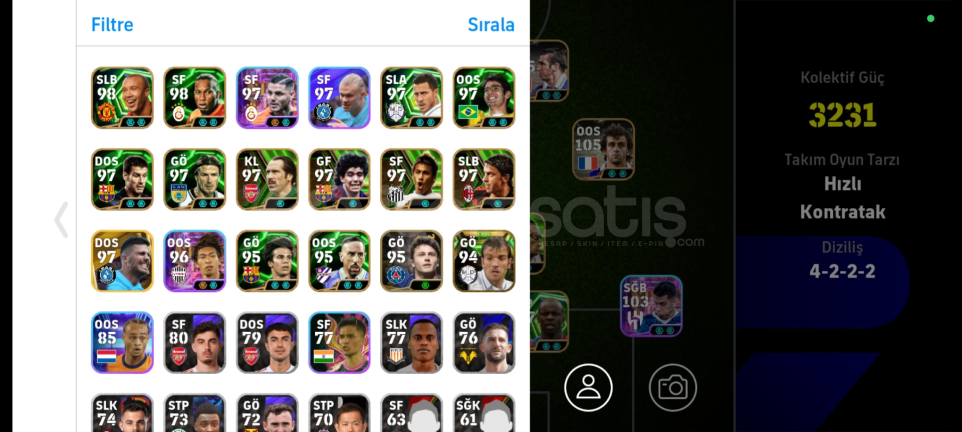 HESAP HAKKINDA:3231 kg Tek bağ en yüksek kartlarla dolu efsane hesap!Güçlendiriciler ayarlandıktan sonra 3237+ kg olur! Bol bol Epic, Showtimes, özel menajarler ve oyunun en güçlü stoperi mevcut!Güzel fiyata efsane hesap çok durmaz kaçırma! ────────────────────────── ...