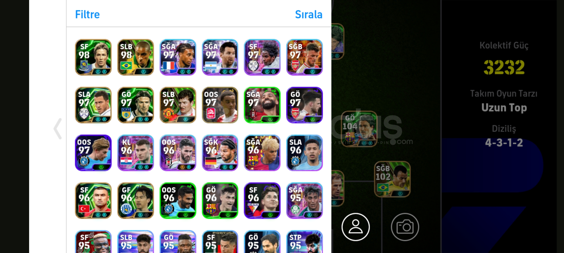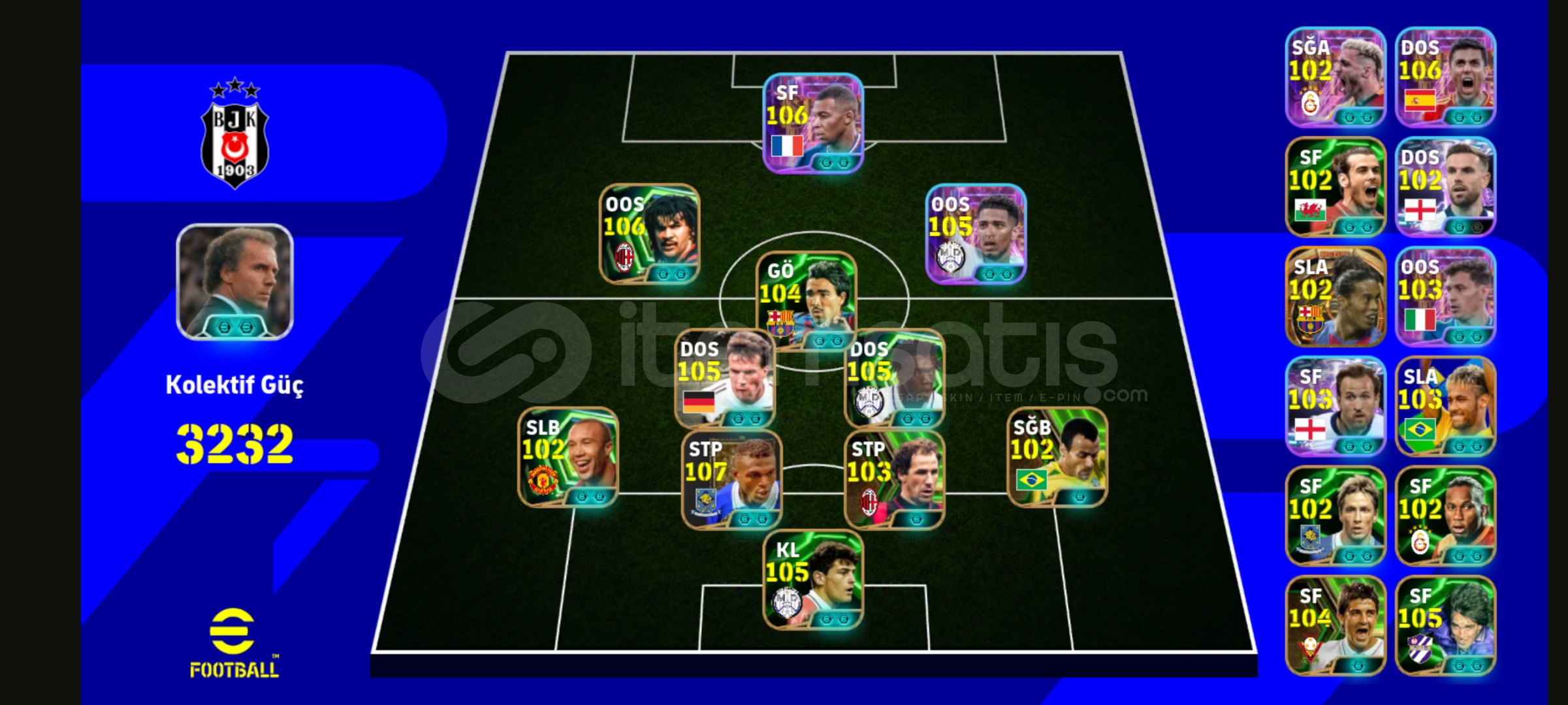 Hesapta 5 tane bombacı bulunmaktaMbappe⭐⭐Burak yılmaz ⭐Olise⭐Bale⭐Rafa Silva⭐Bazı oyuncularMbappe⭐⭐Seedorf(yer füzlei)⭐⭐Gulit⭐Rodri⭐Casillas⭐Matthaus⭐Deco⭐Bellingham⭐Desailly⭐Barïs Alper yılmaz⭐Nicolo barella⭐Baersi⭐Cafu⭐Roberto carlos⭐5 özel menajerPazarlık olur sadece yazınBağlar Temiz değ...